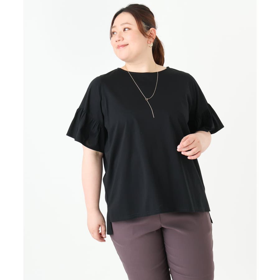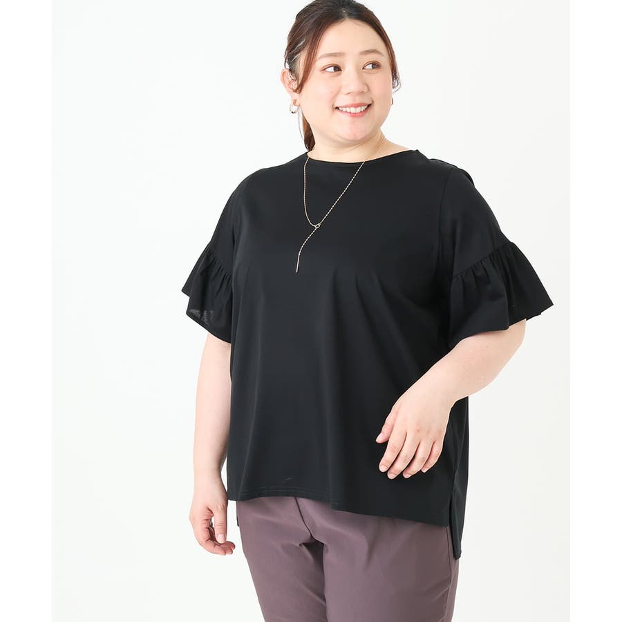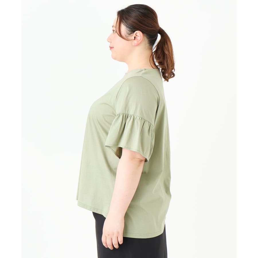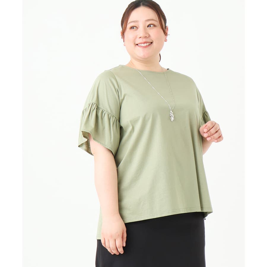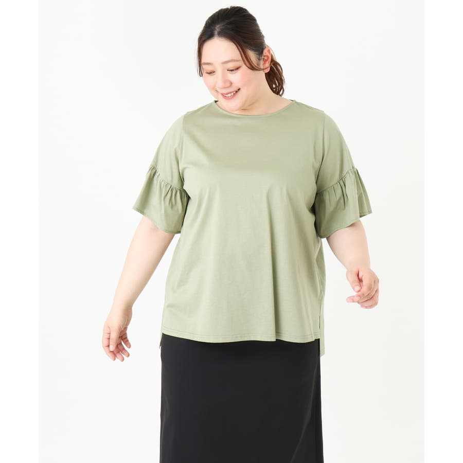 【大きいサイズ】ギャザーフリルスリーブトップス