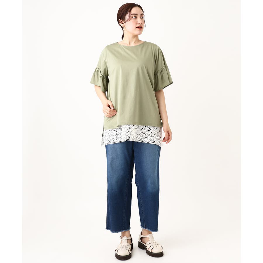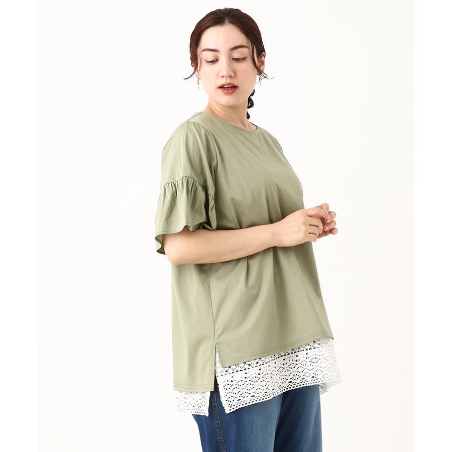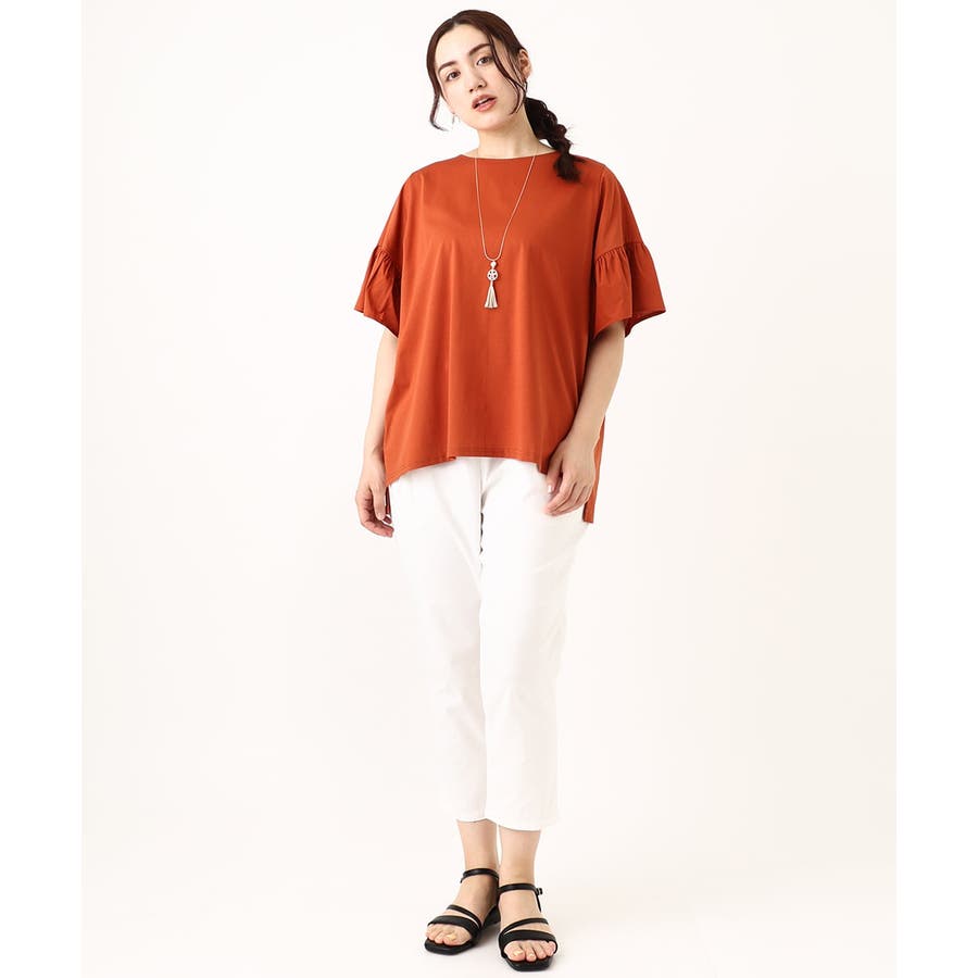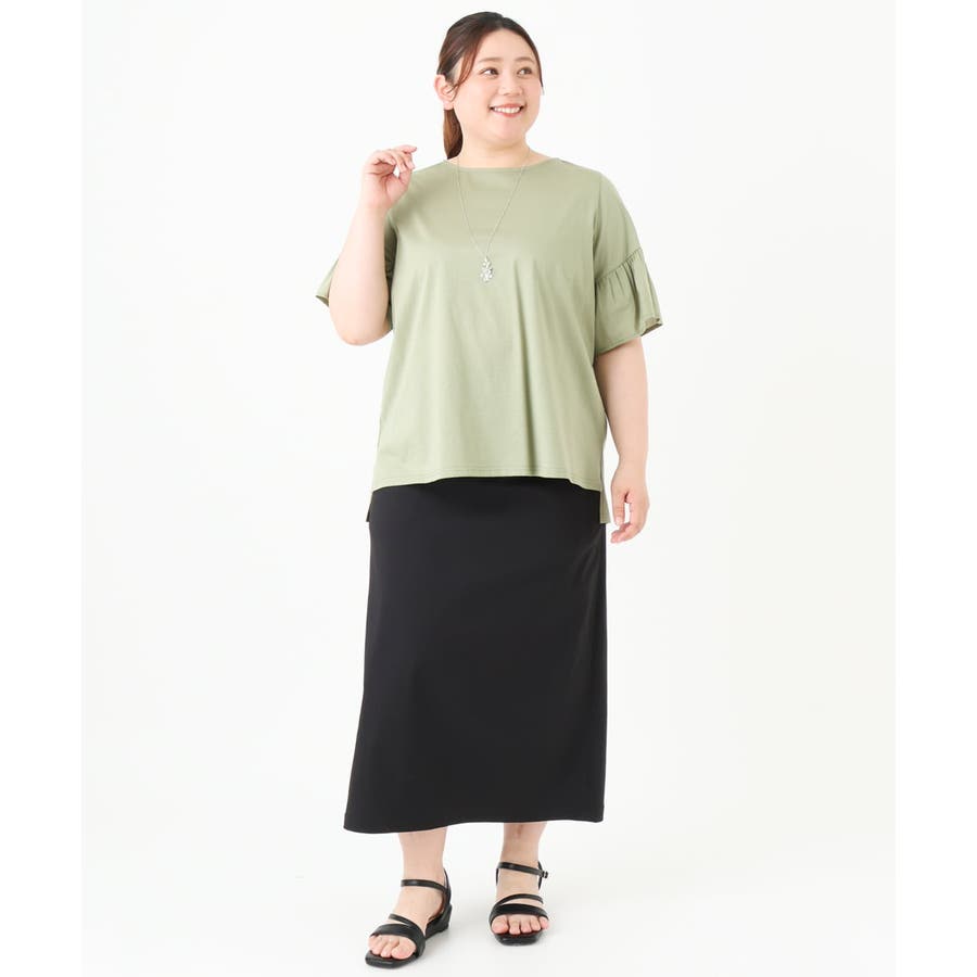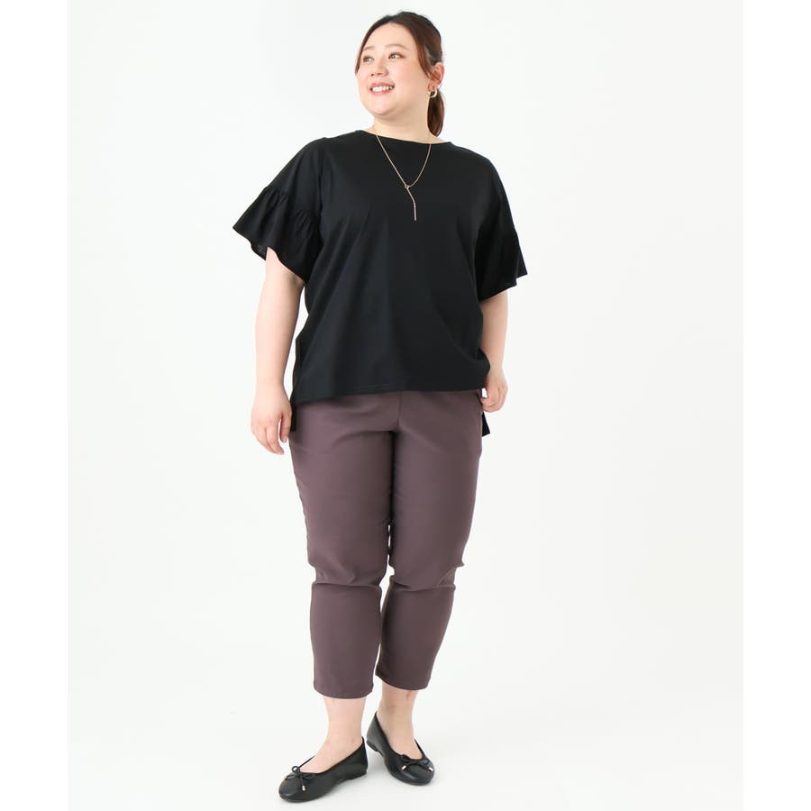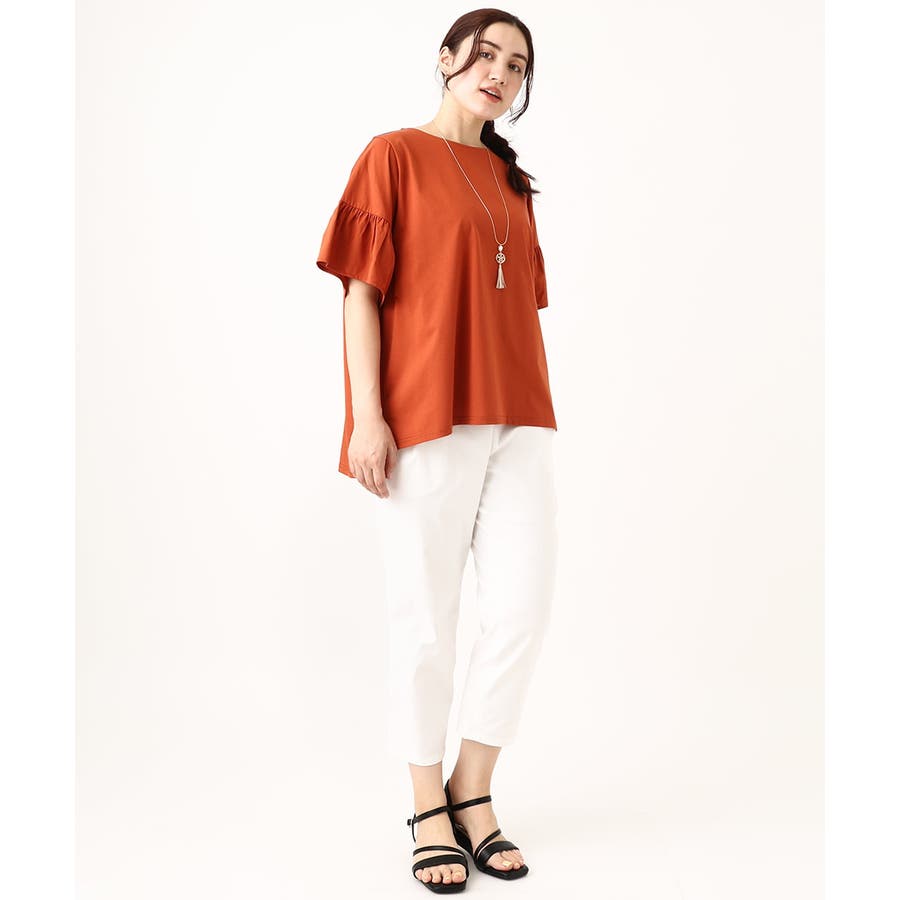 【大きいサイズ】ギャザーフリルスリーブトップス