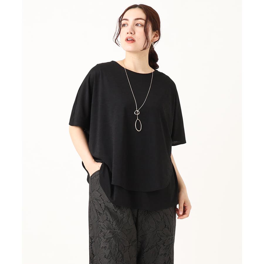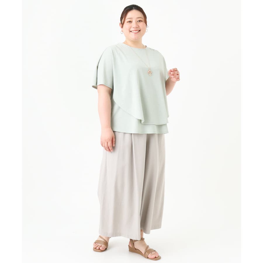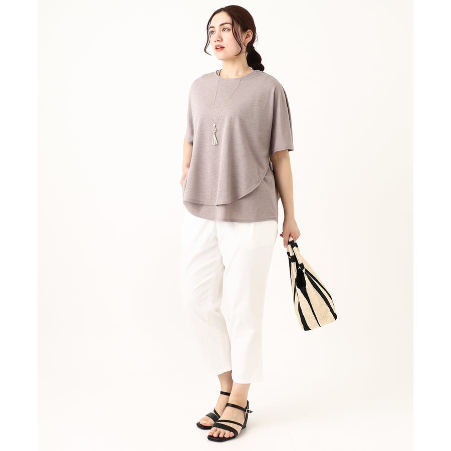 麻調の表面感があり、上品なドレープが出るカットソー素材を使用。