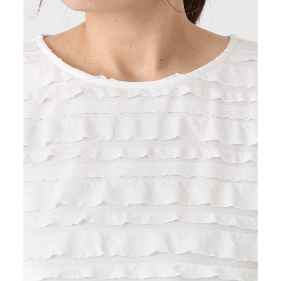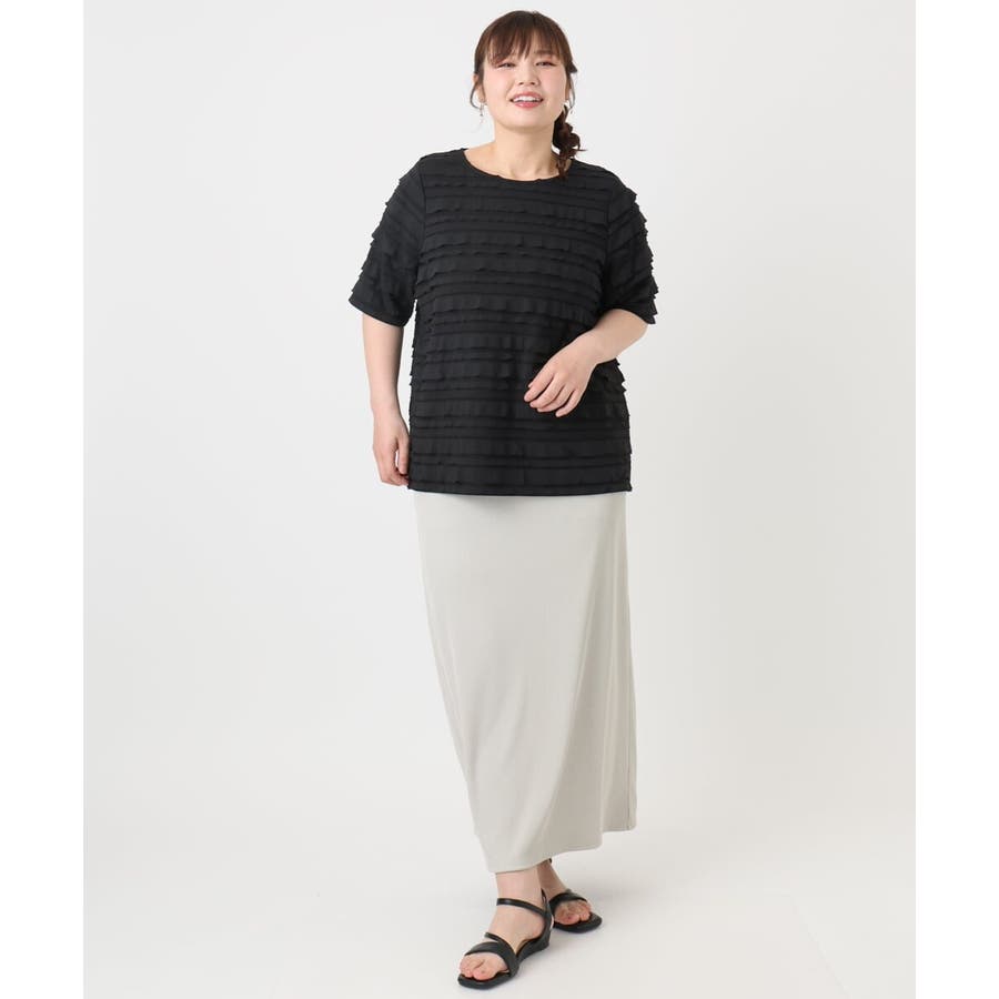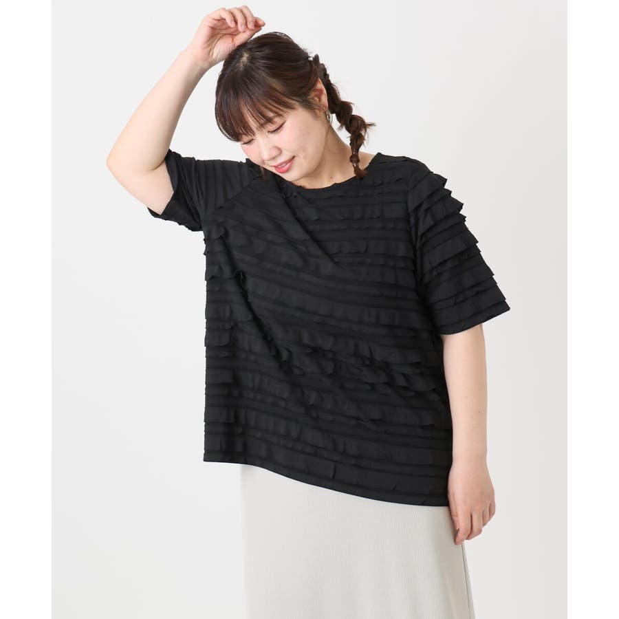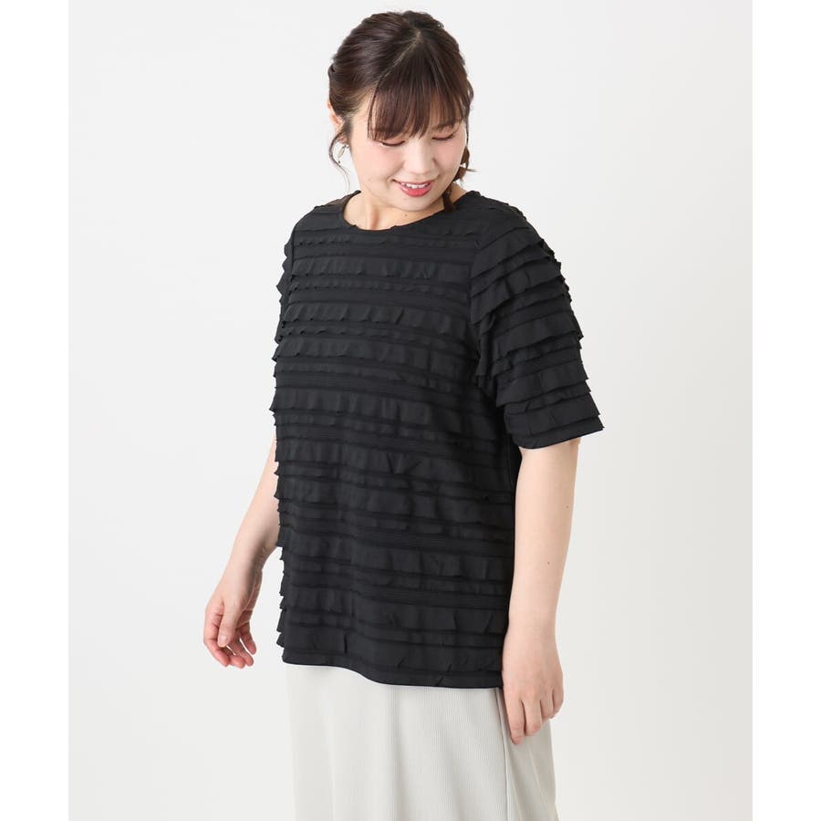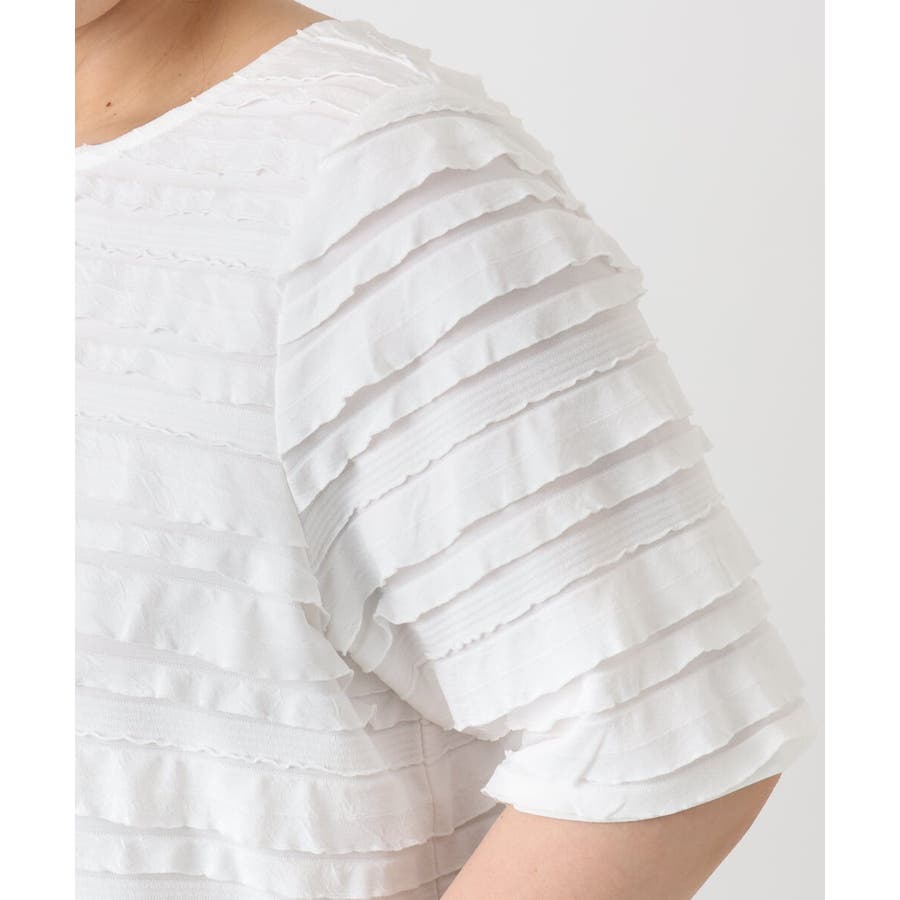 ランダムにティアードになったフリルは子供っぽくならず、ミニマルなシルエットで仕上げています。