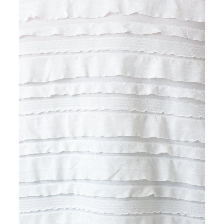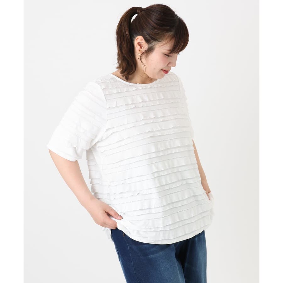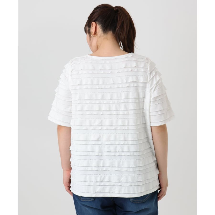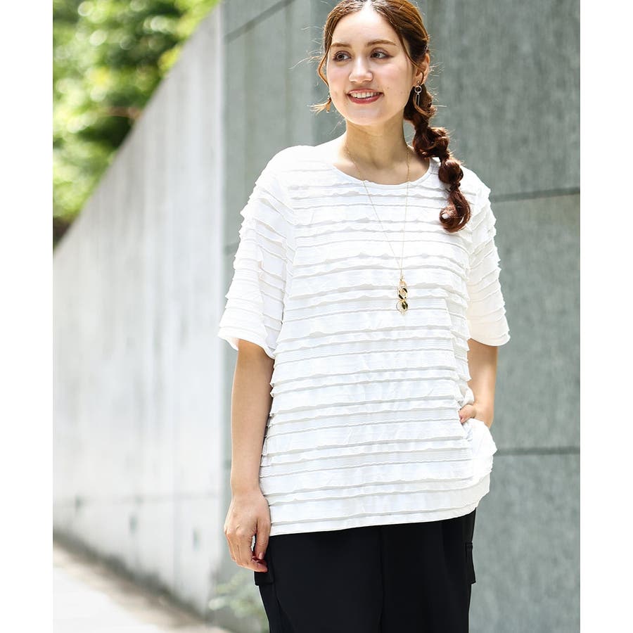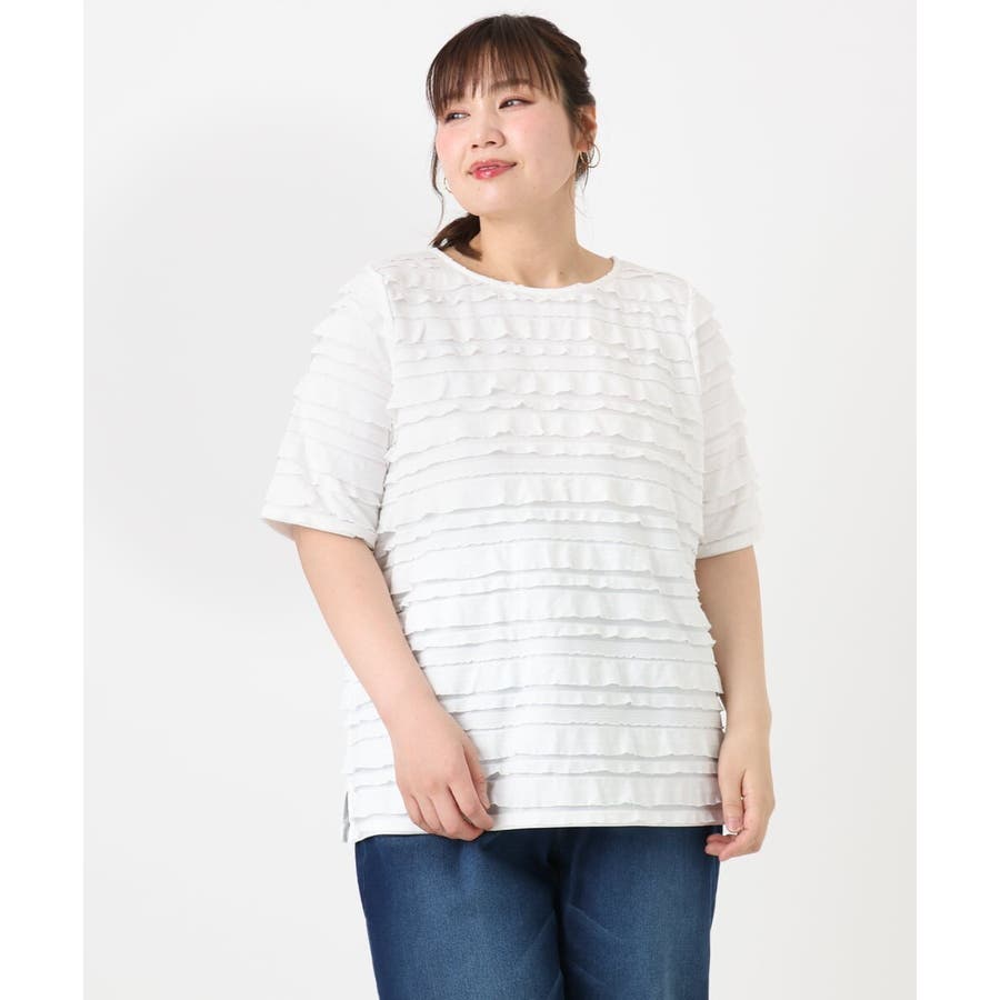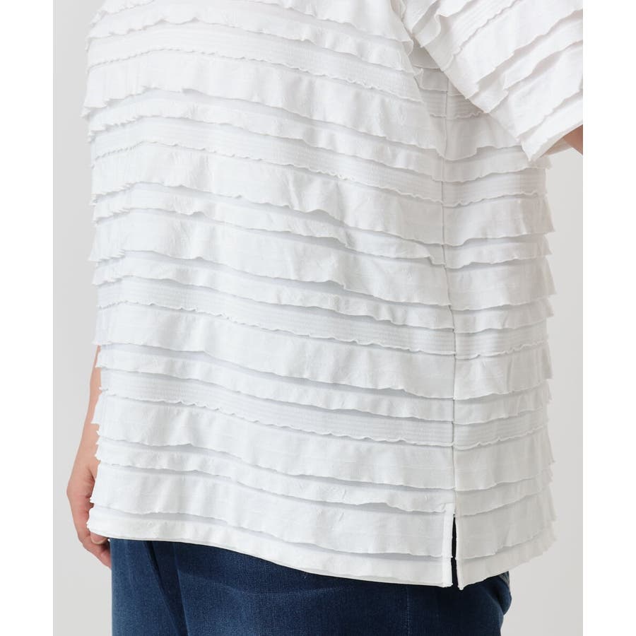 ランダムにティアードになったフリルは子供っぽくならず、ミニマルなシルエットで仕上げています。