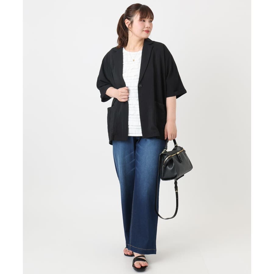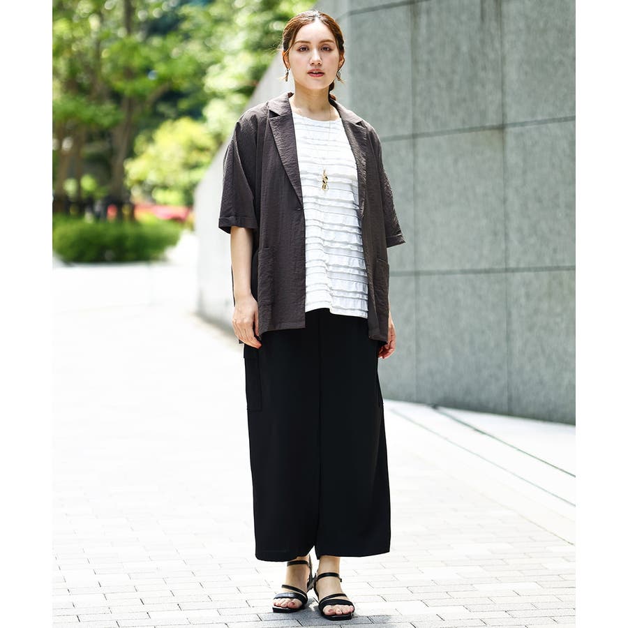 品番OLJHA10169(シアーハーフスリーブジャケット)、品番OLLHA31119(カーゴパンツ)と合わせた大人カジュアルなスタイルがイチオシ。