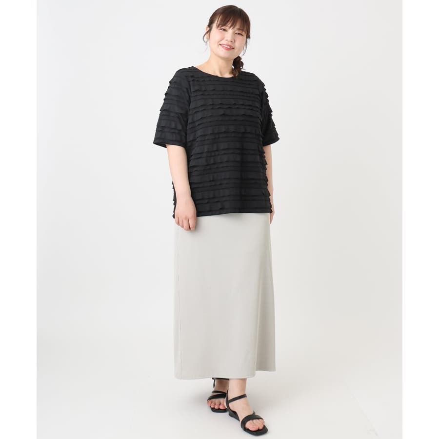 フリルがティアード状に出る伸びの良いジャージ素材を使用しています。