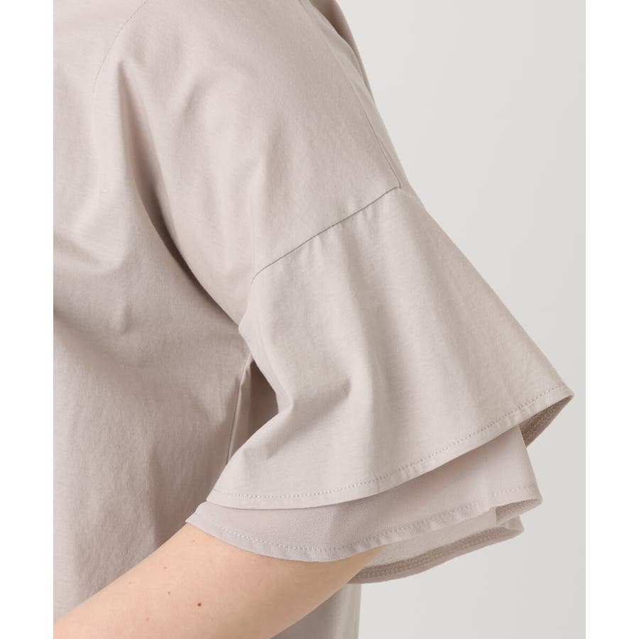 透け感素材を袖にレイヤードした今年らしいジャージートップス。