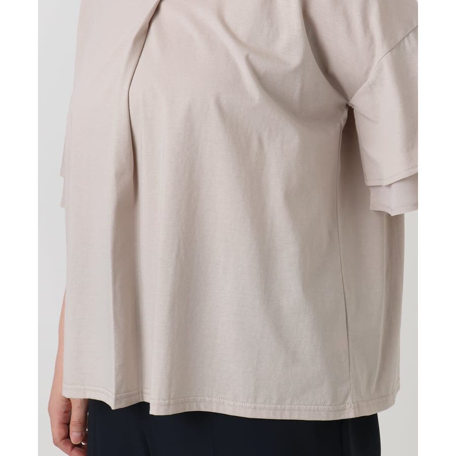 フレアスリーブと肘まである袖丈で二の腕もしっかりカバーします。