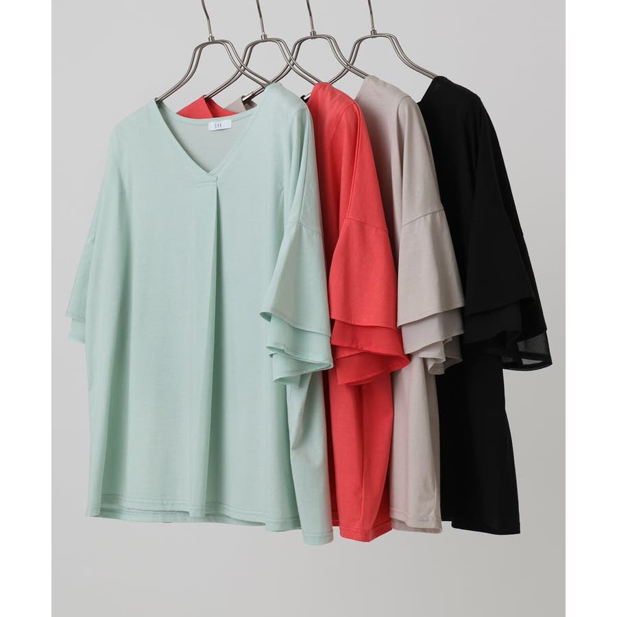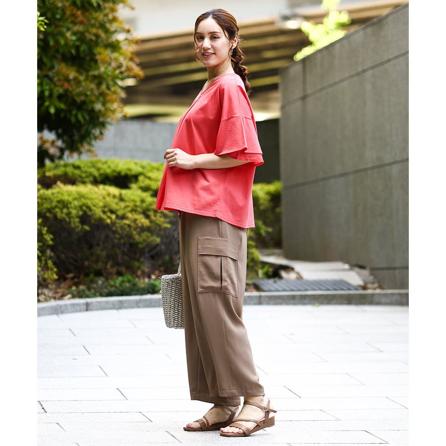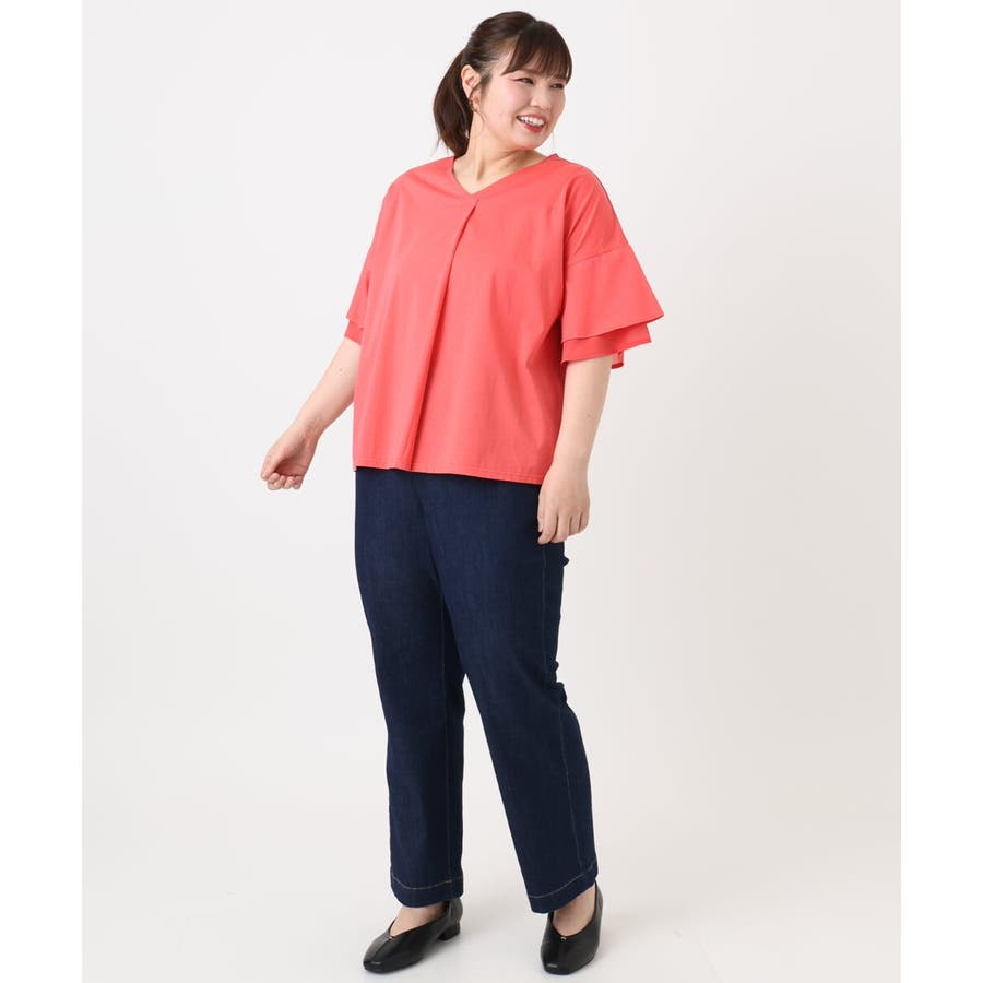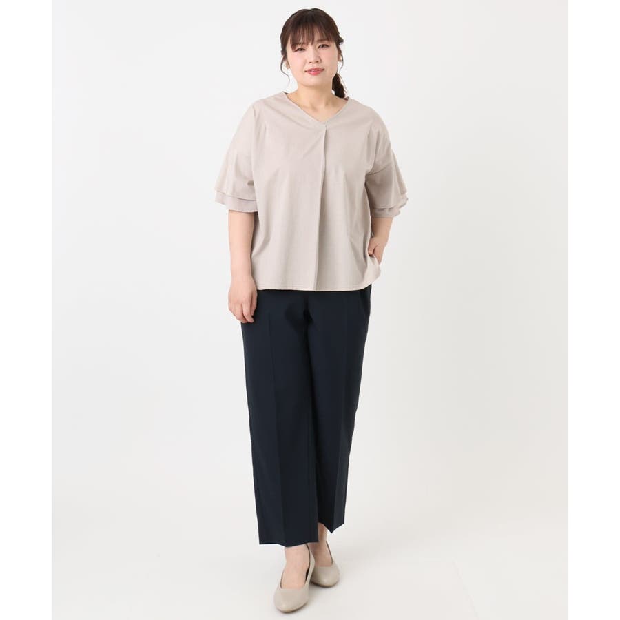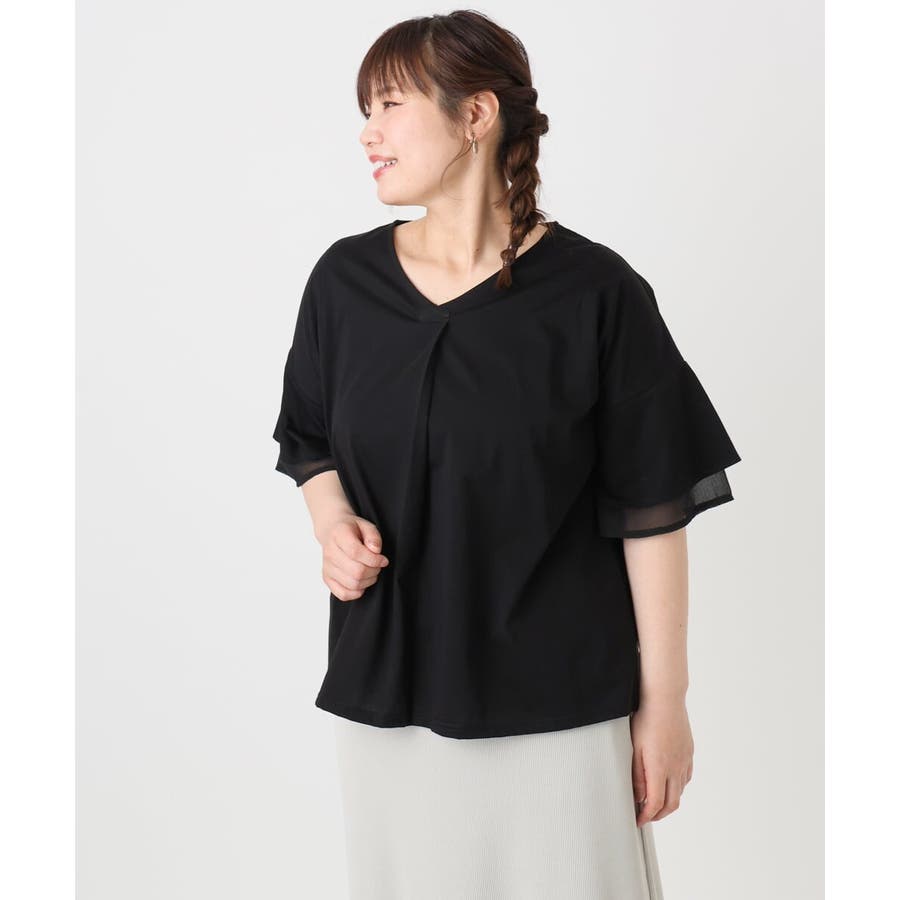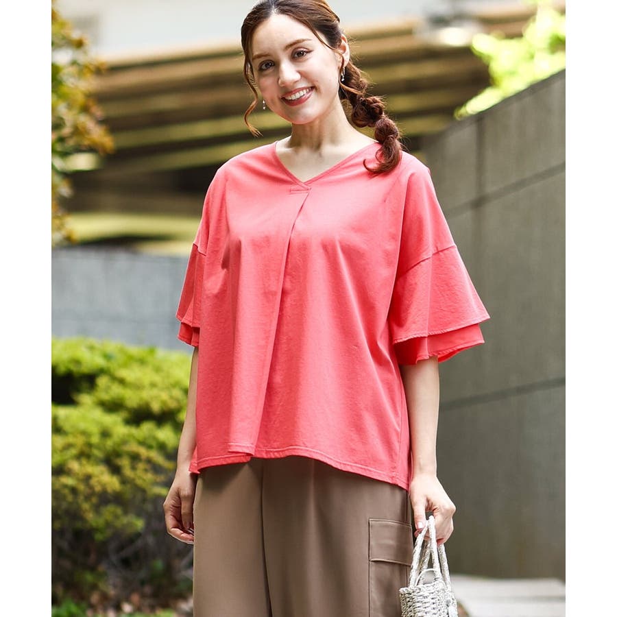 ネックラインをすっきり見せるVネックにタックをいれたゆったりシルエット。