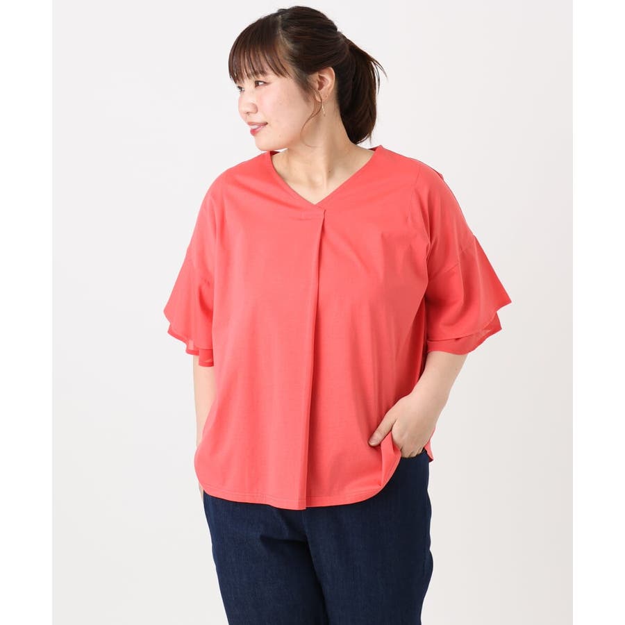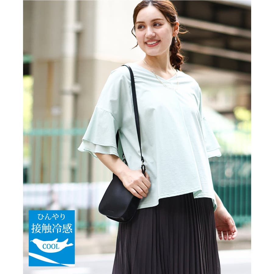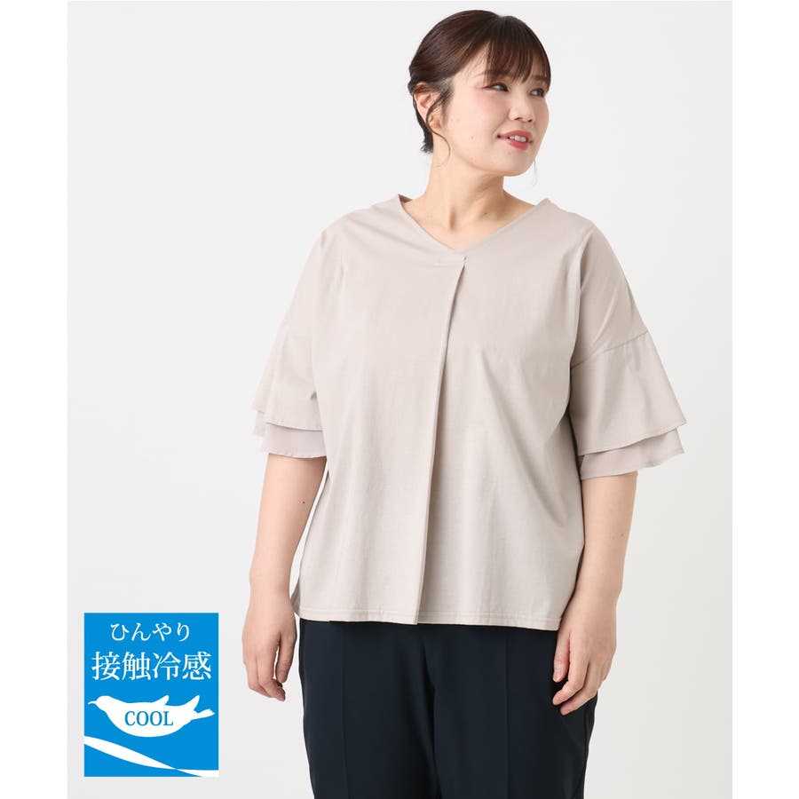 【大きいサイズ/接触冷感】Vネックシルケット天竺カットソー