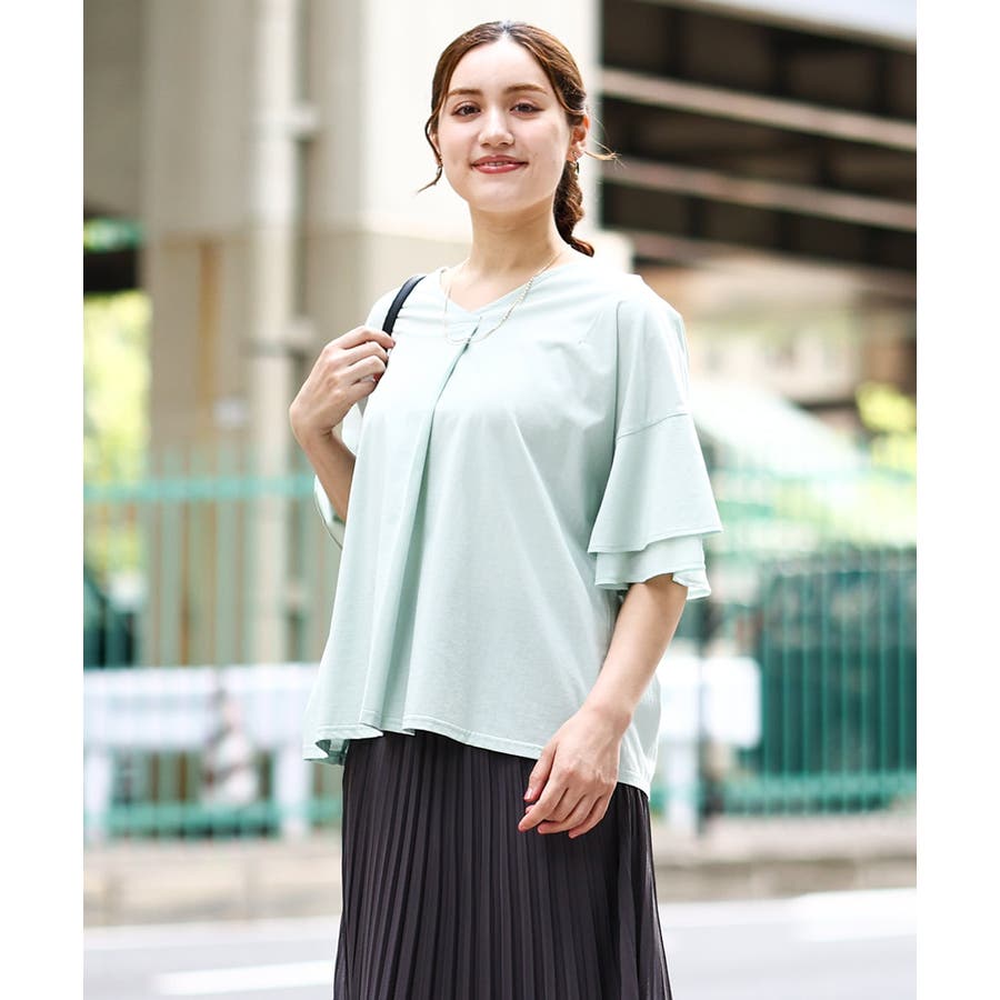 きれいな表面感のジャージー生地を使用しているので、通勤からデイリーまで幅広くご着用いただけるトップスです。