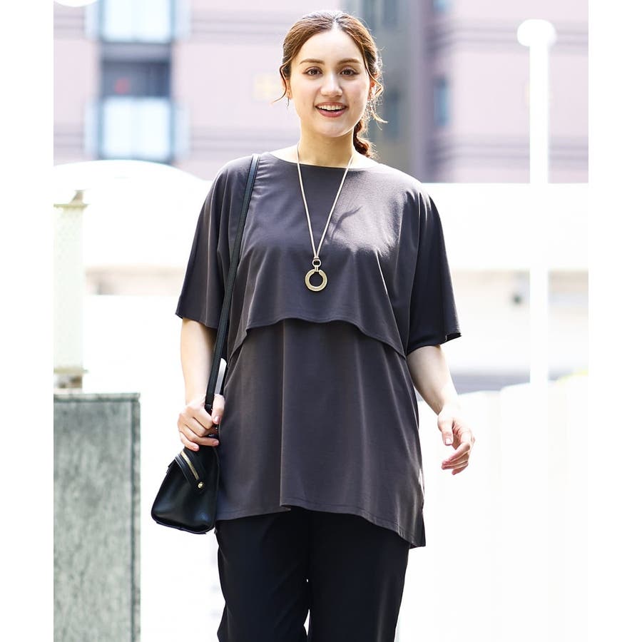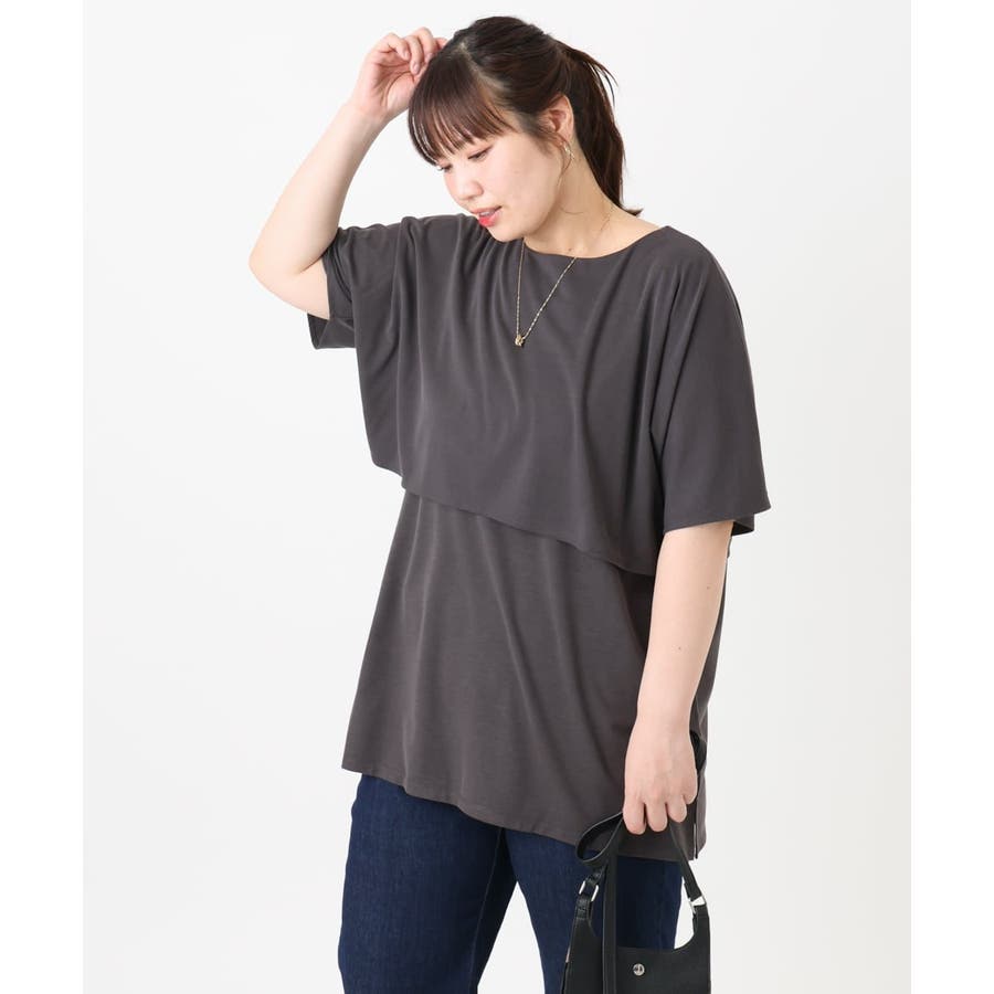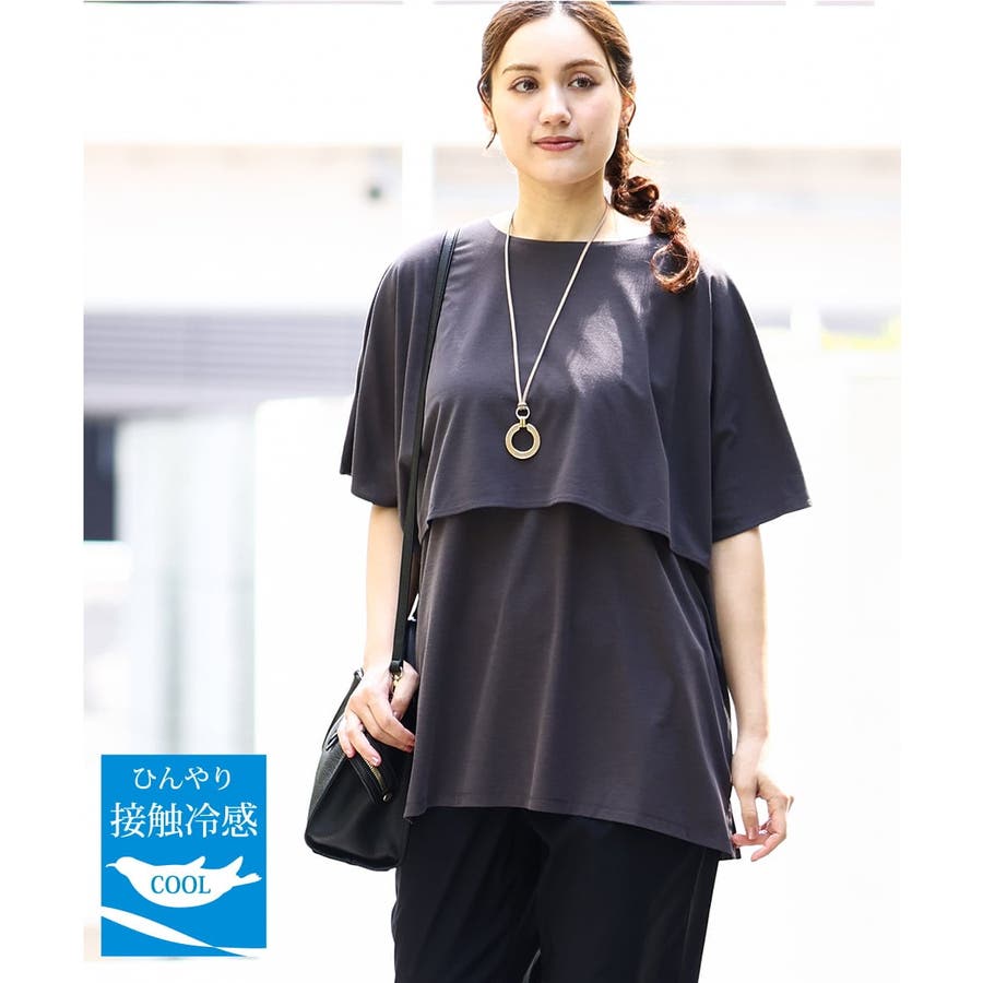 【大きいサイズ/接触冷感】ケープデザインカットソー