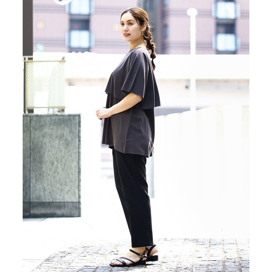 インナーはタンクトップ型ですがケープ風にレイヤードされているトップスには袖があるので、涼しく着られて安心です。
