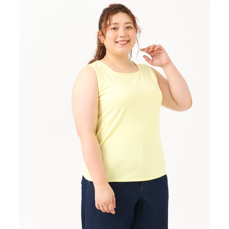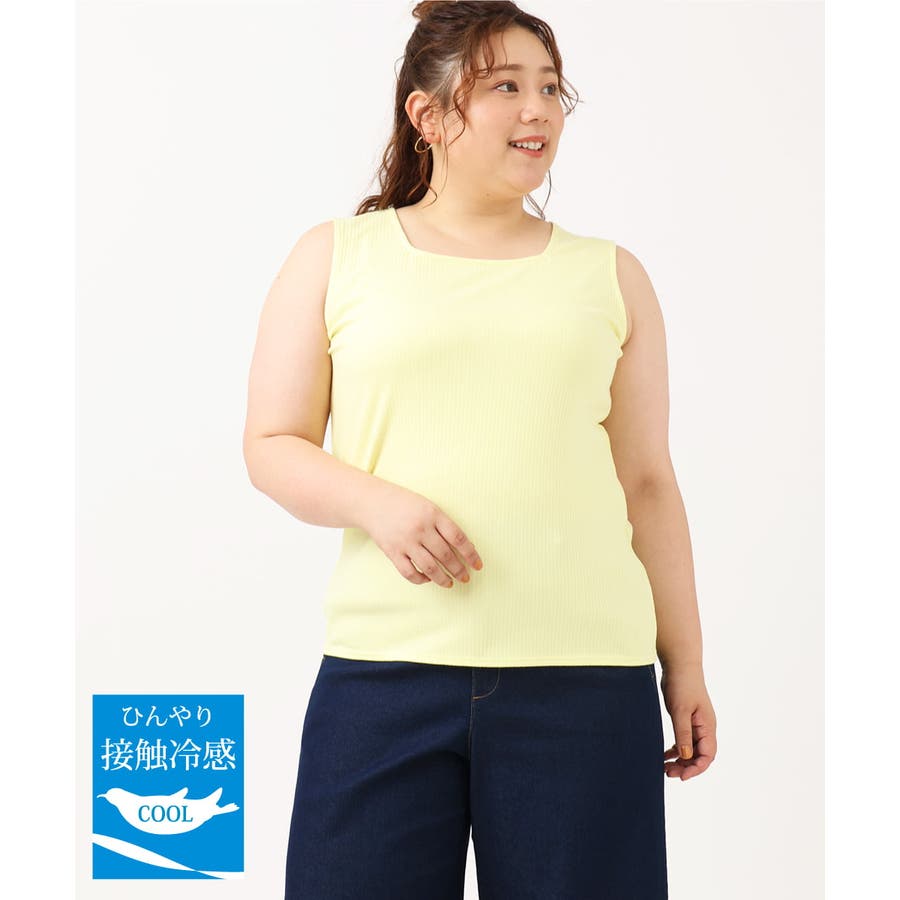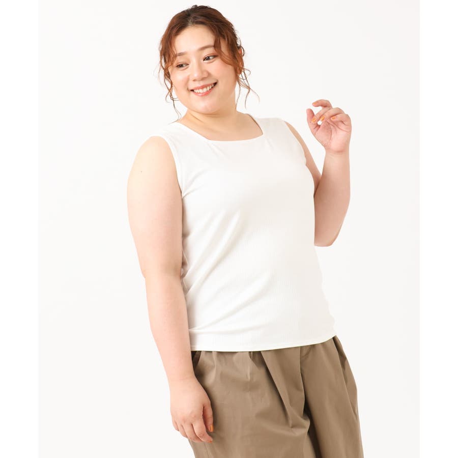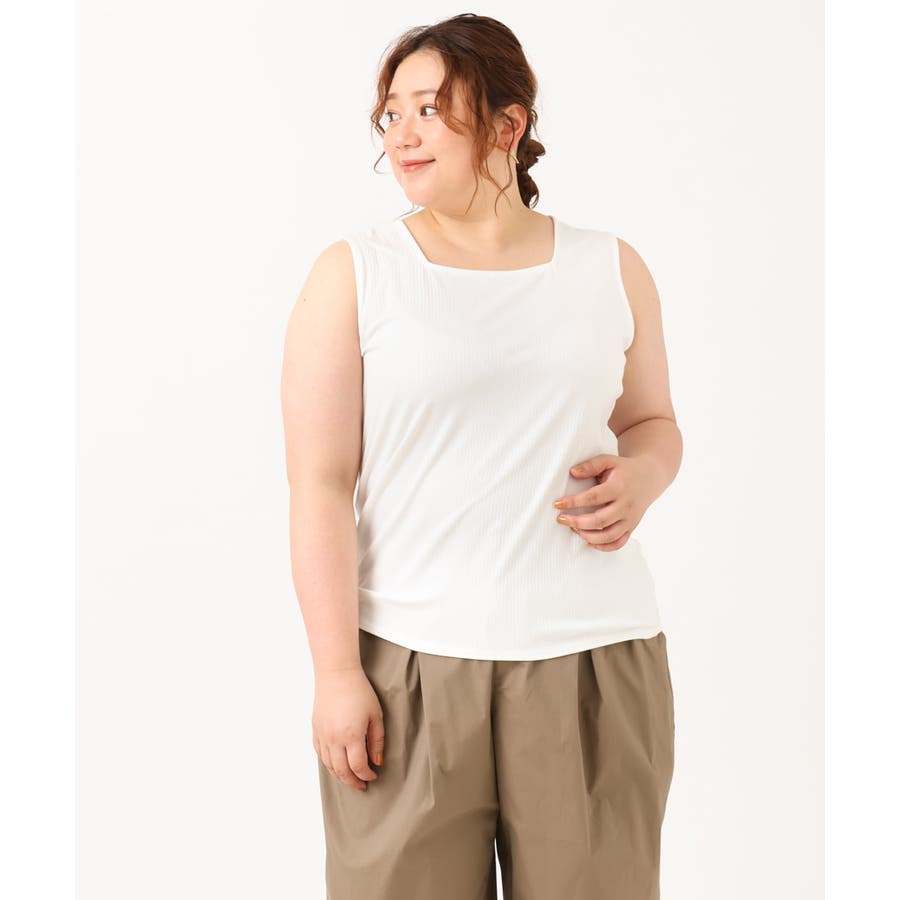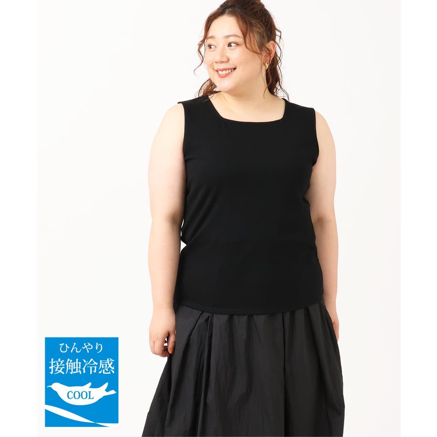 【大きいサイズ/接触冷感】スクエアネックタンクトップ
