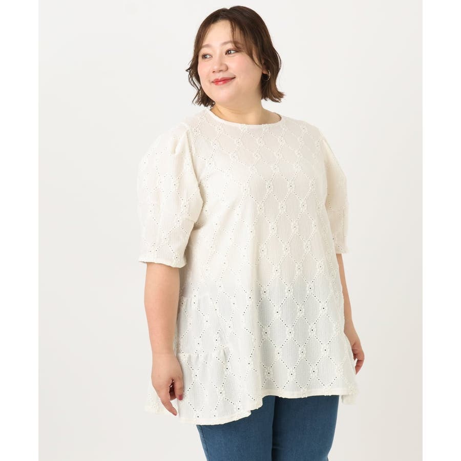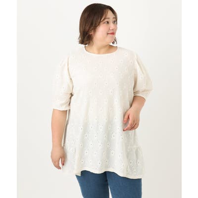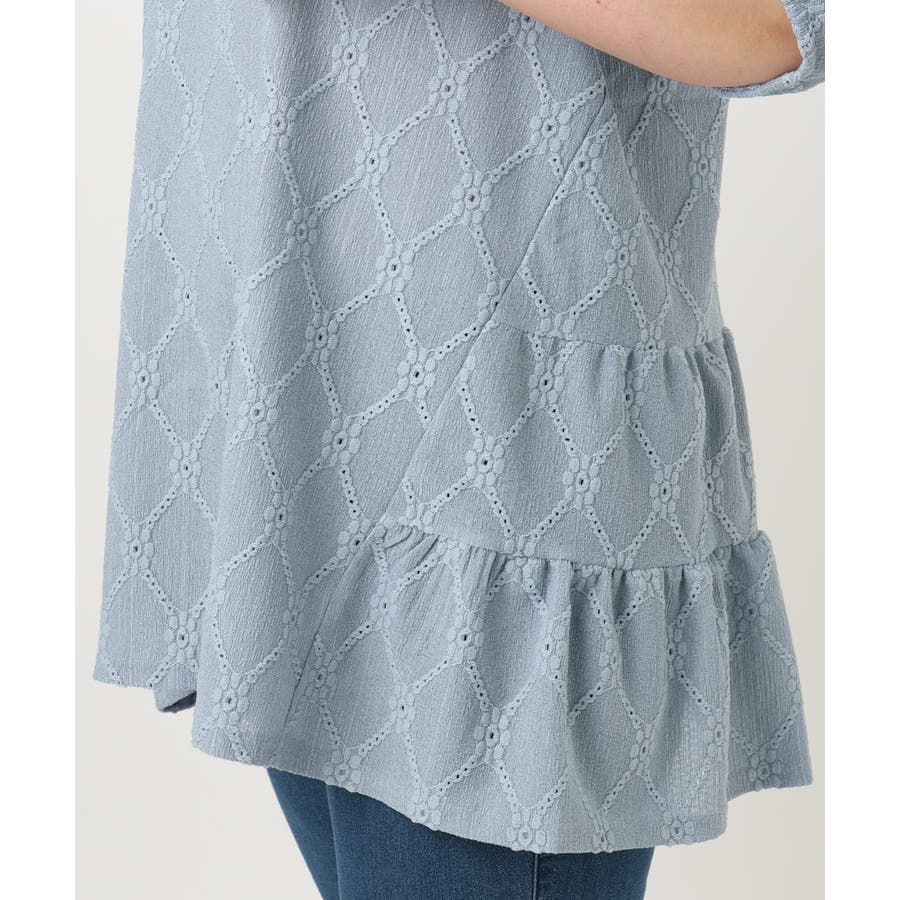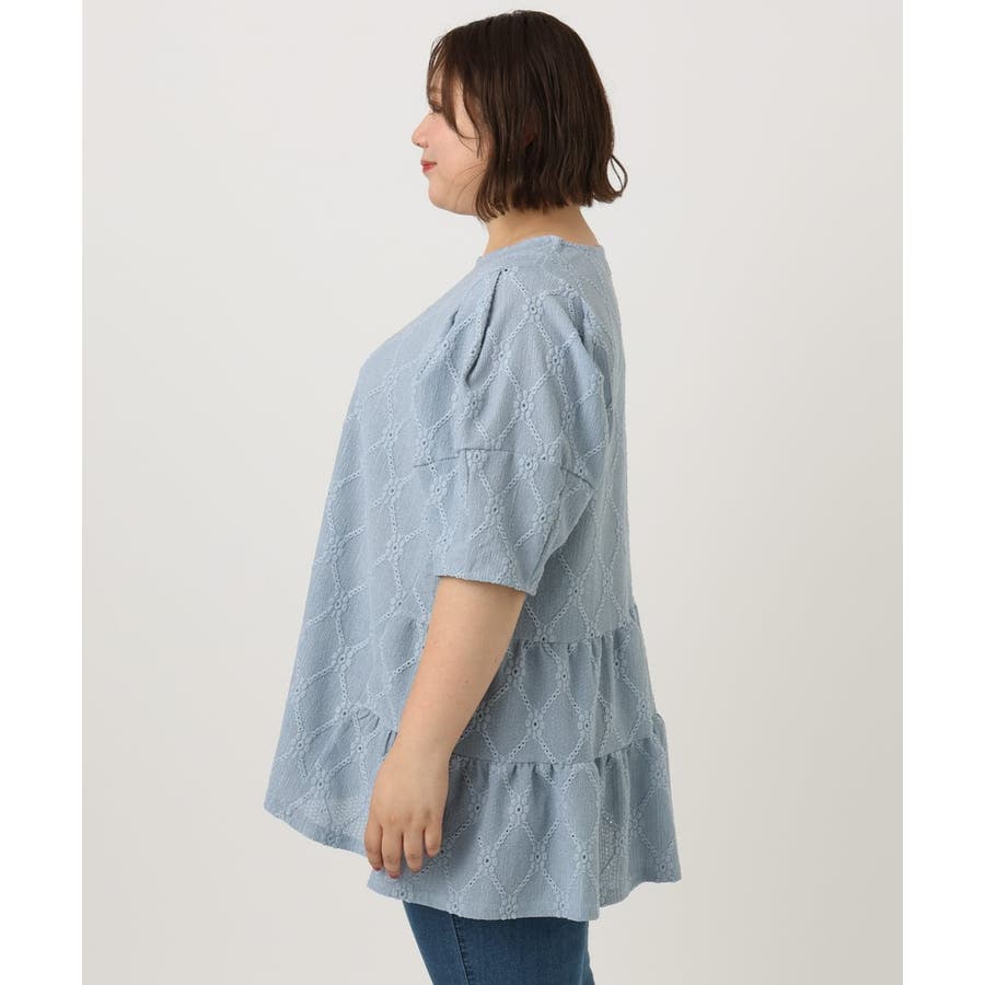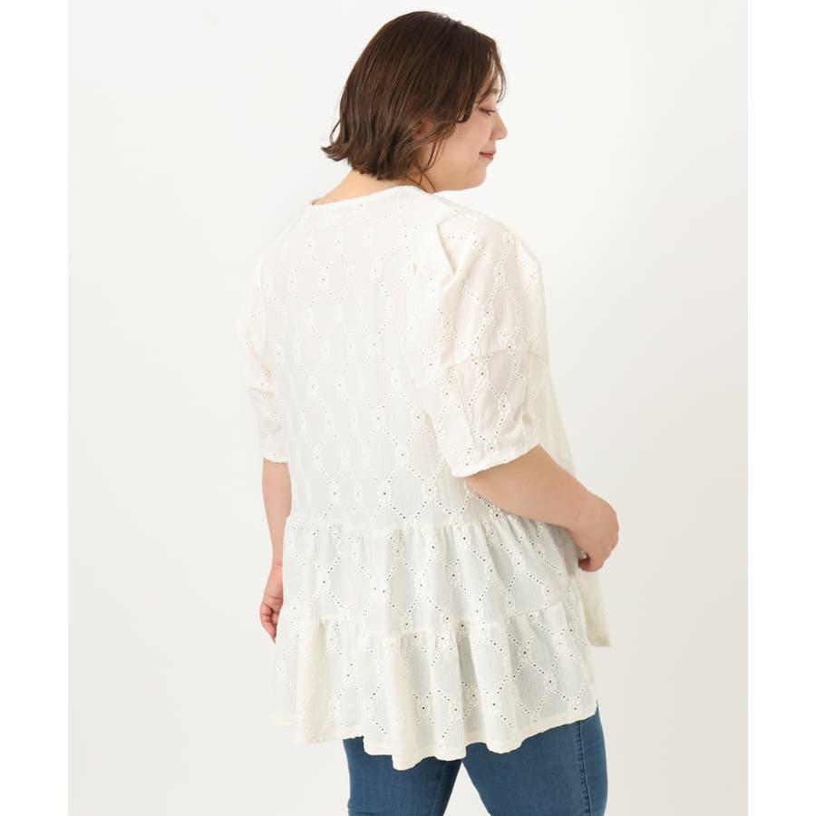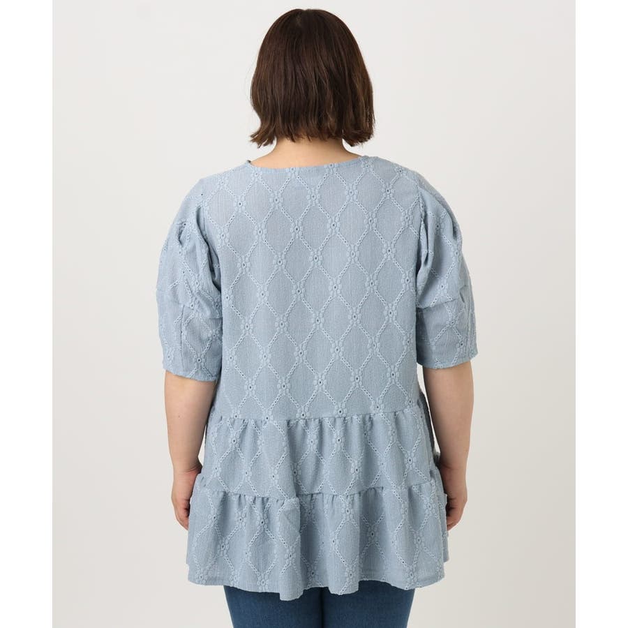 【大きいサイズ】アイレットレースティアードトップス