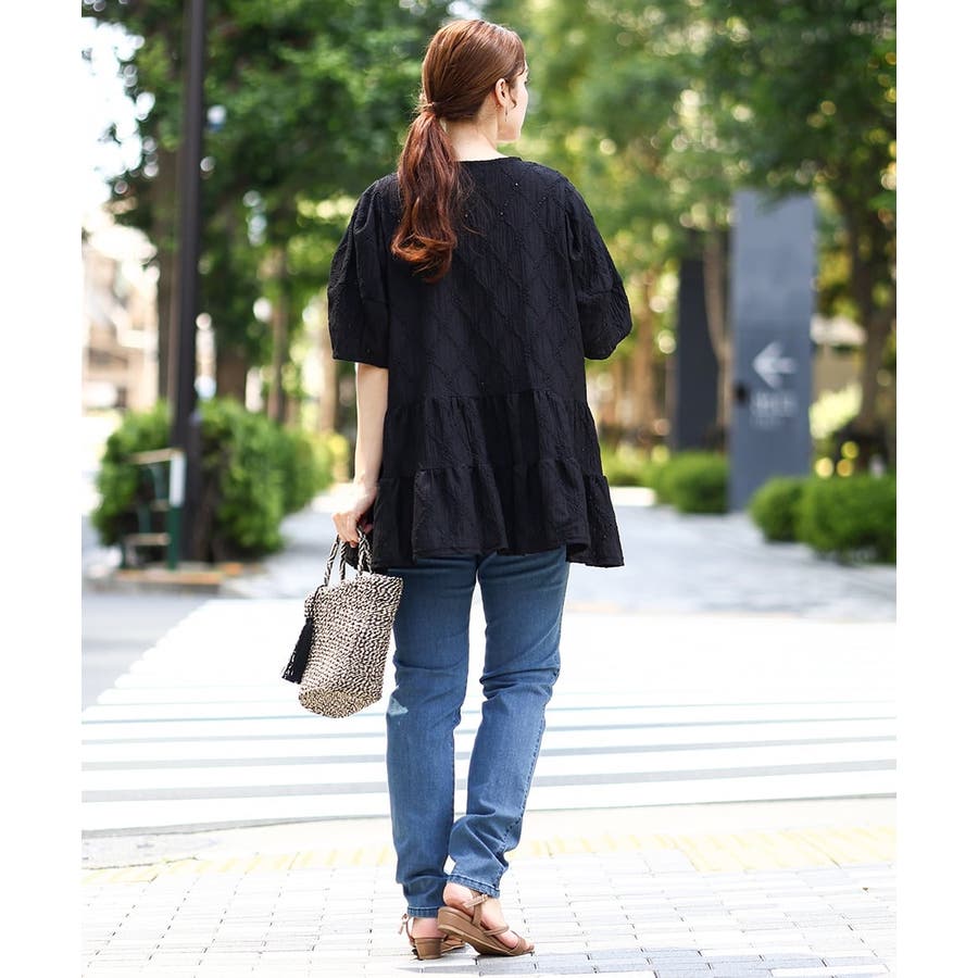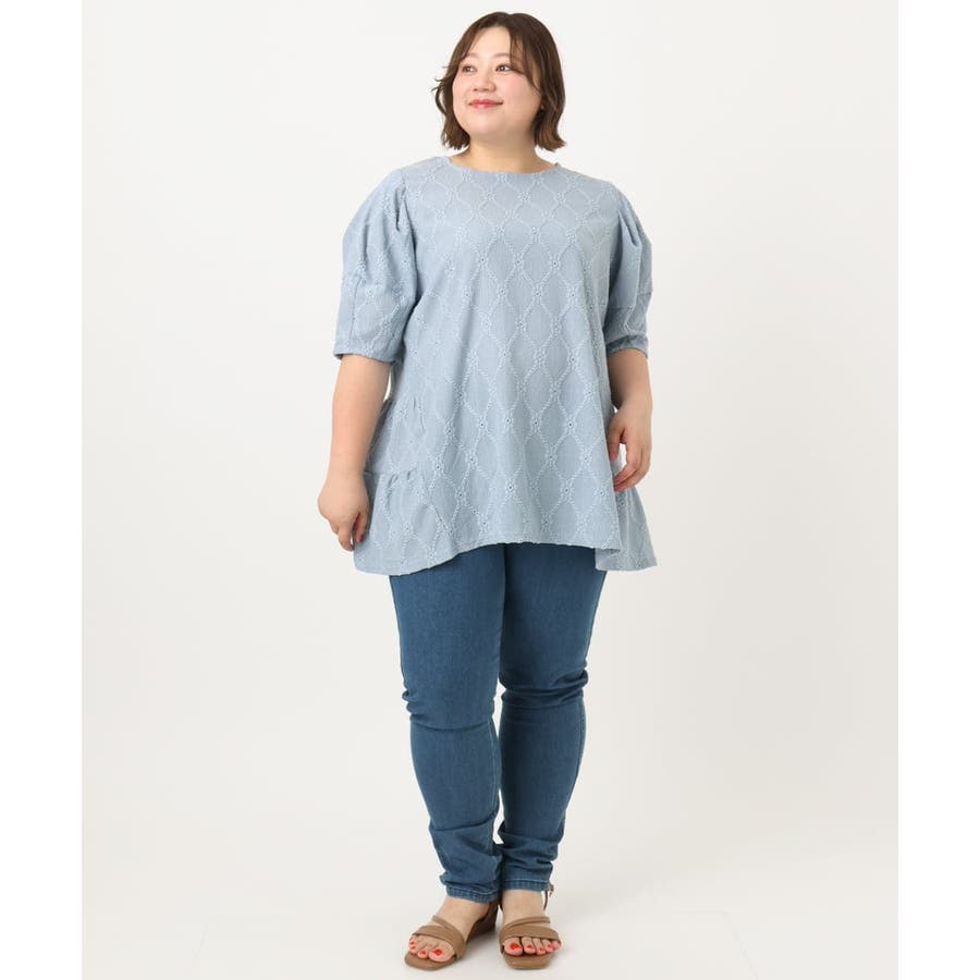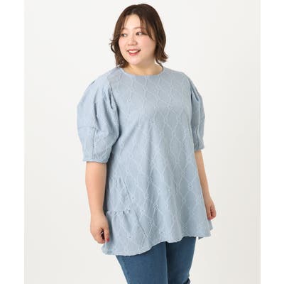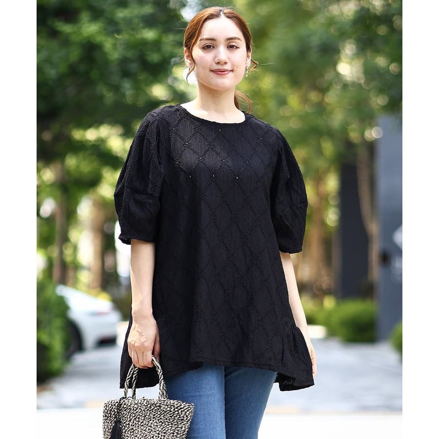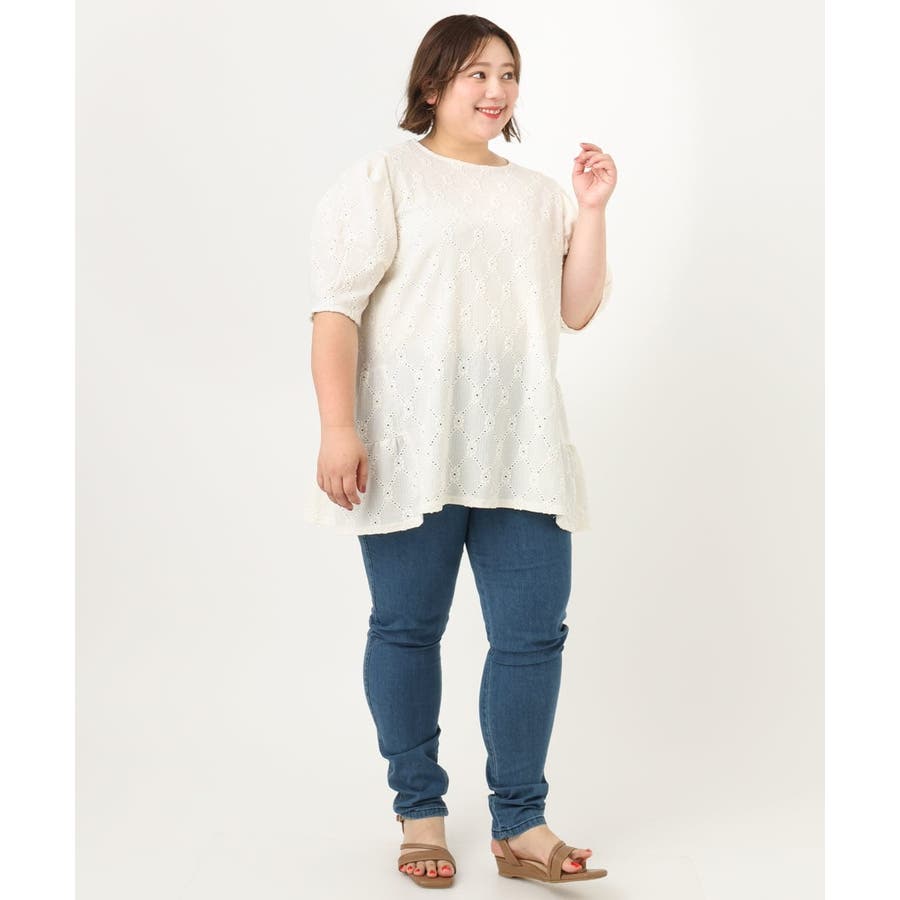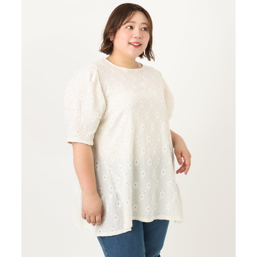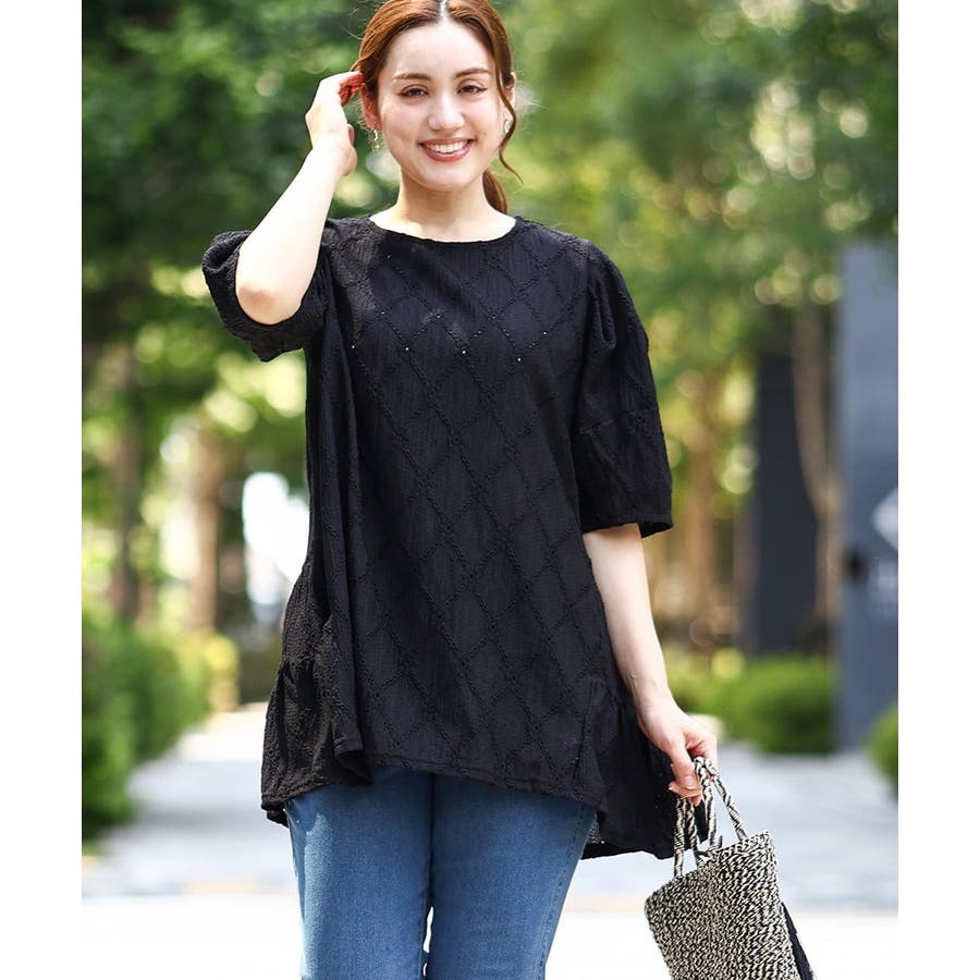 【大きいサイズ】アイレットレースティアードトップス