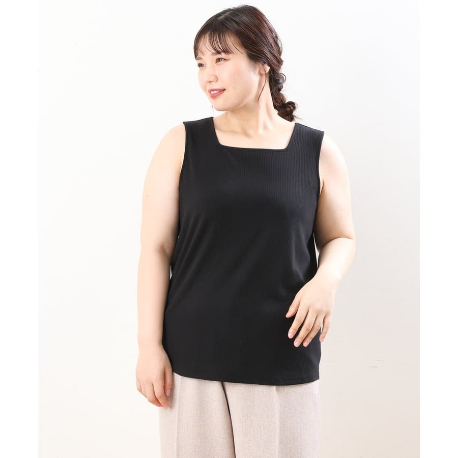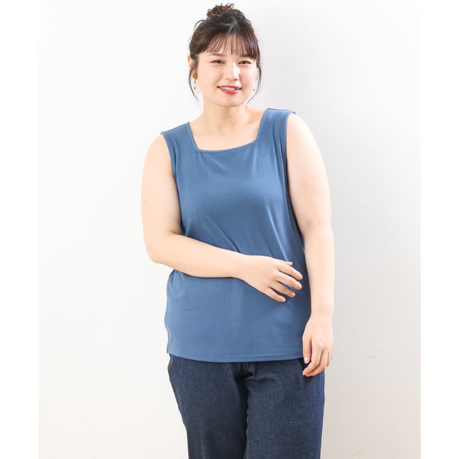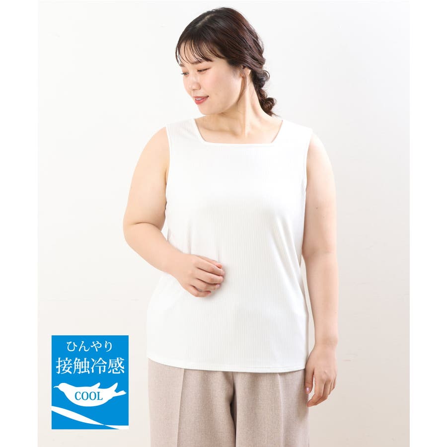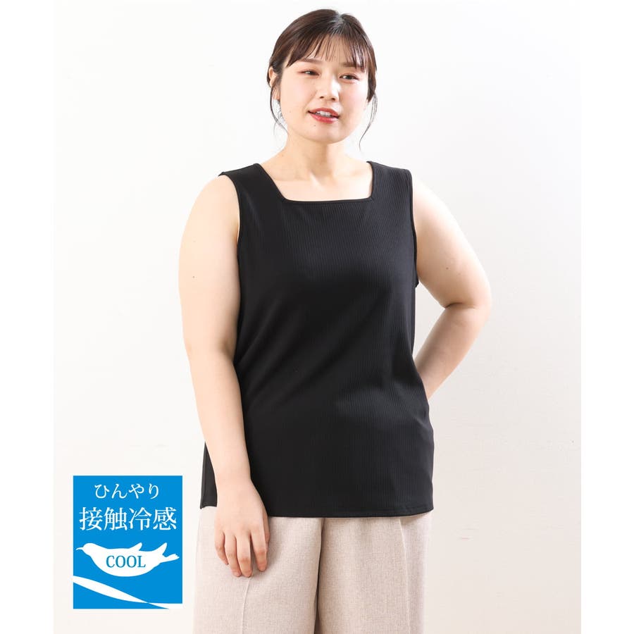 【大きいサイズ/接触冷感】スクエアネックタンクトップ