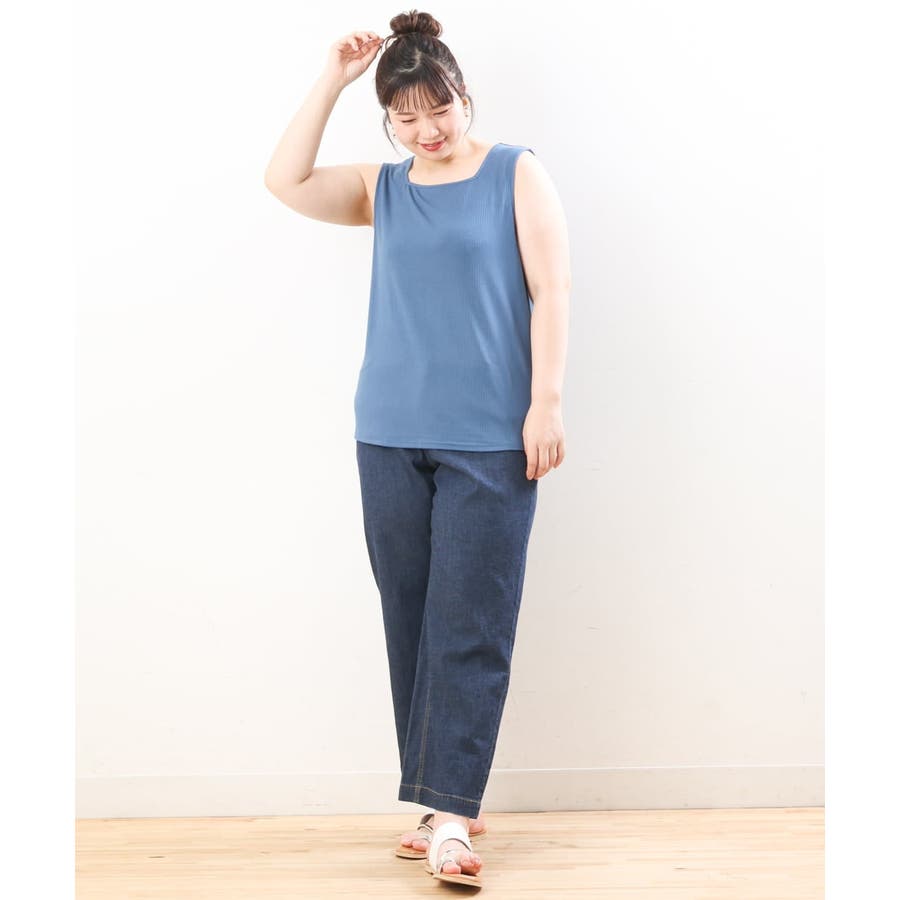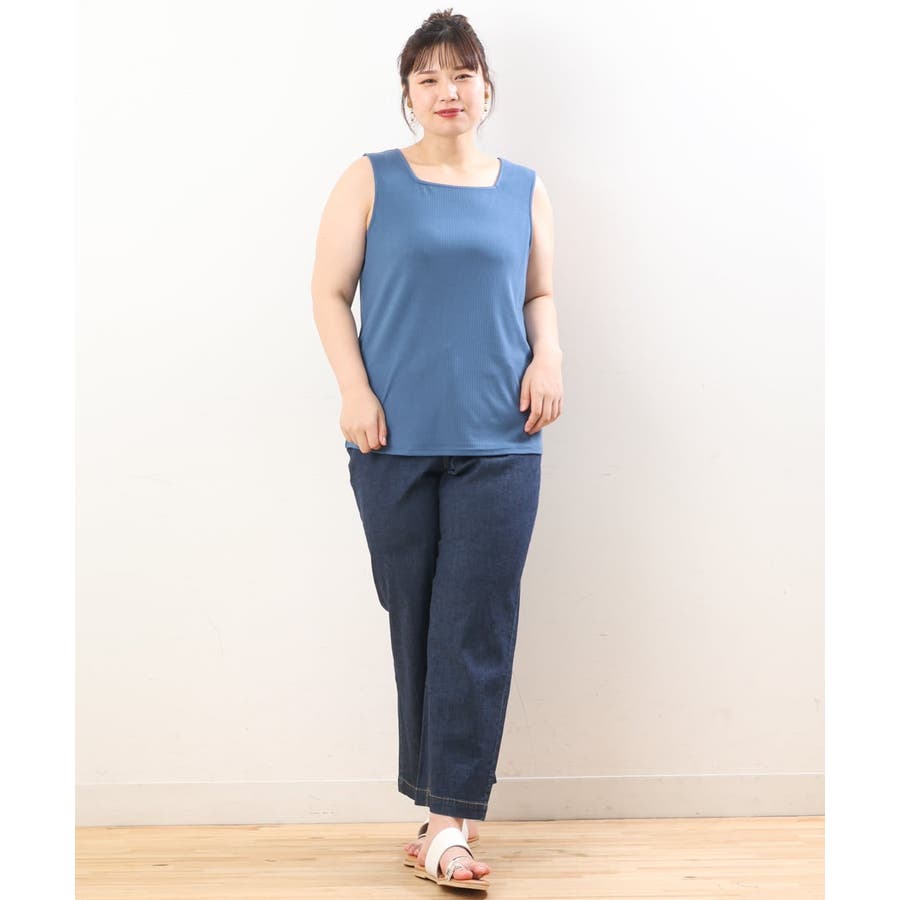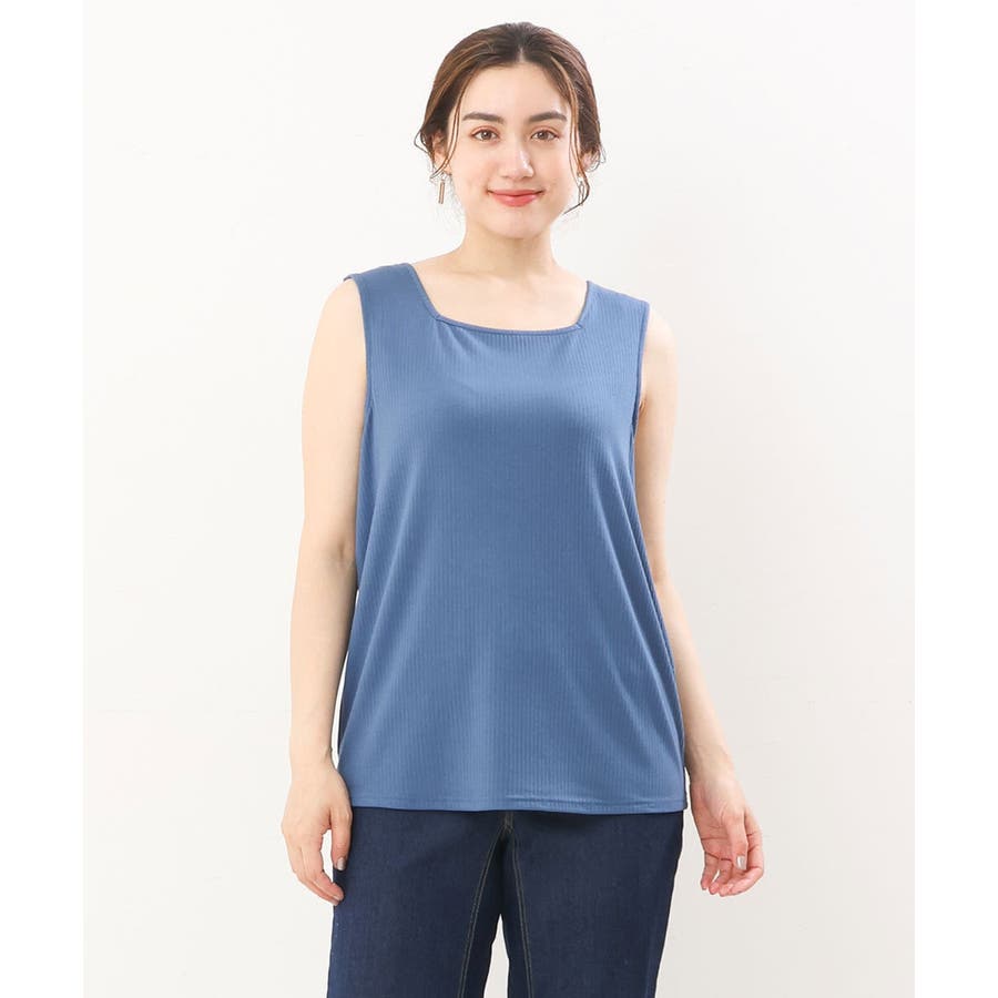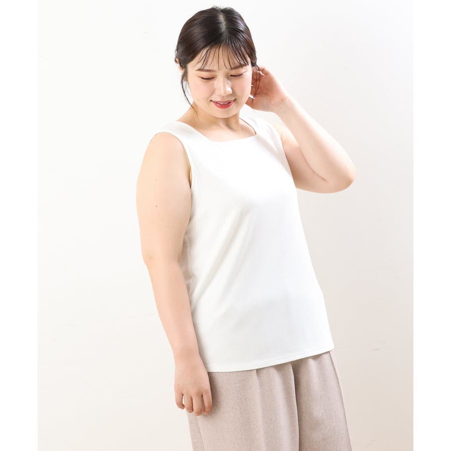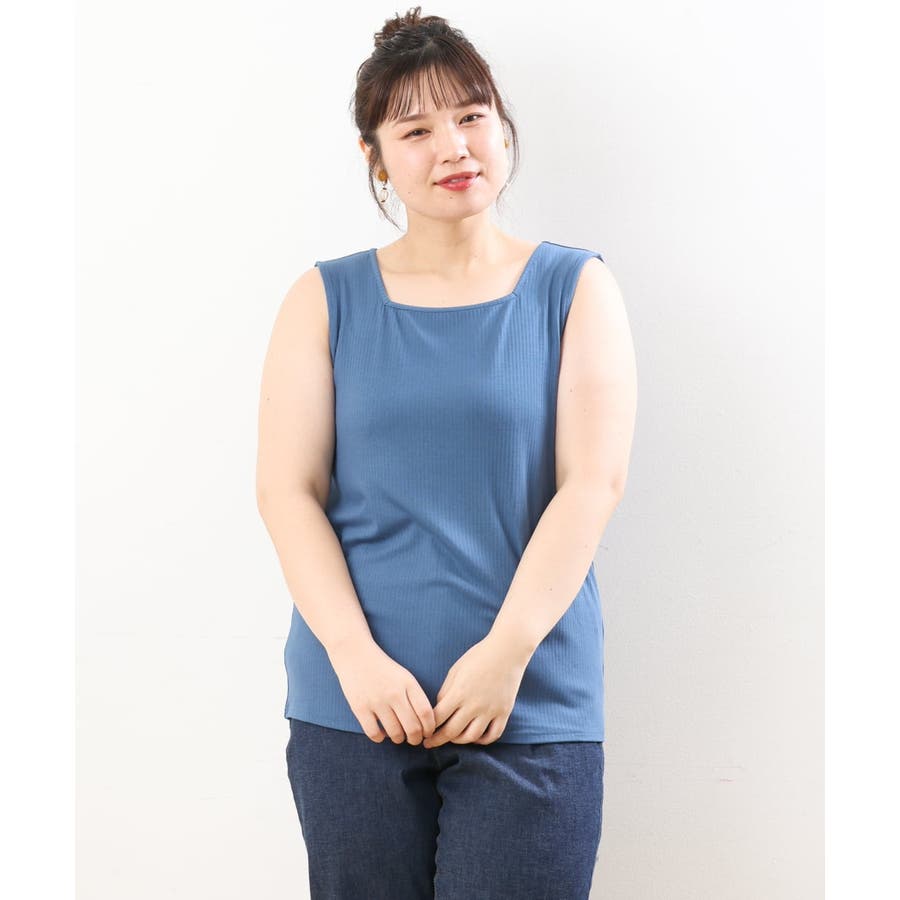 【大きいサイズ/接触冷感】スクエアネックタンクトップ