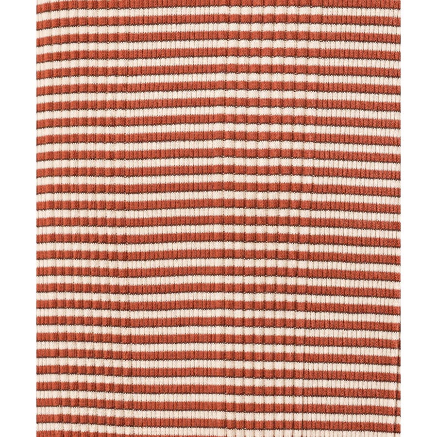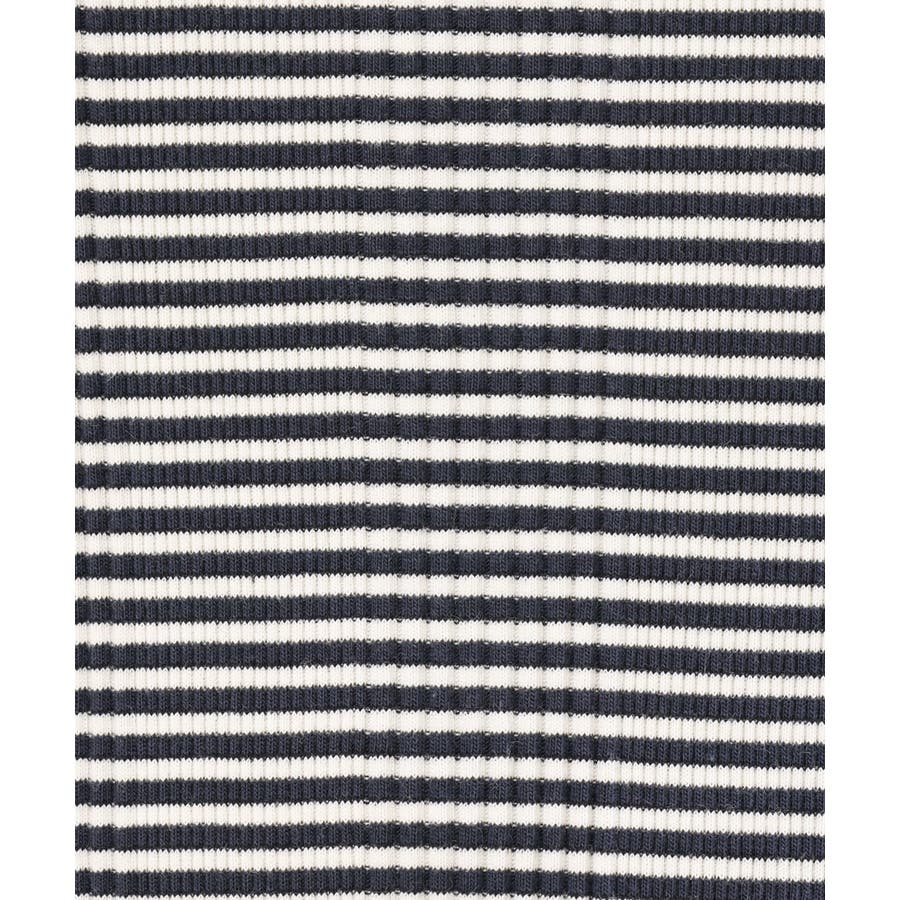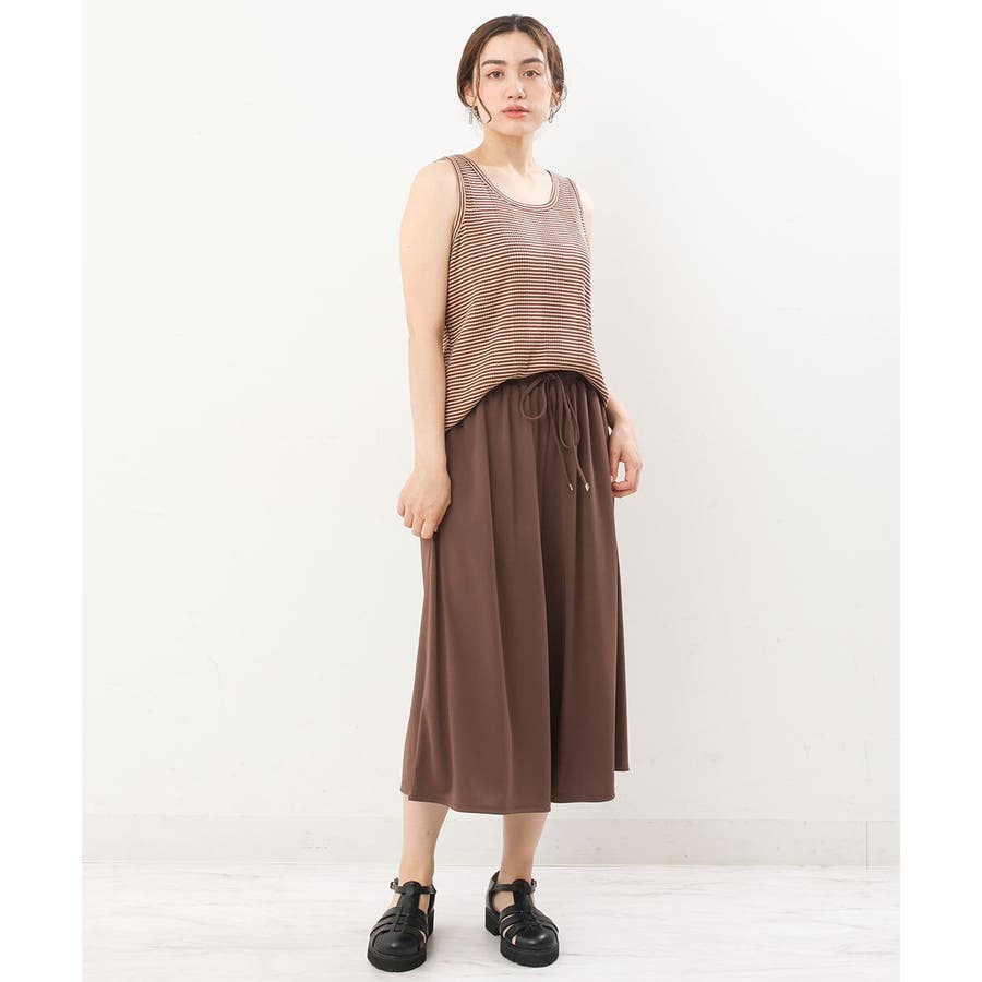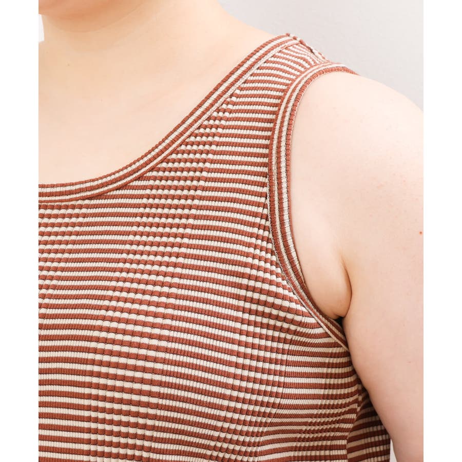 \t コーディネートのアクセントになるミジンコボーダーのテレコジャージタンクトップ。