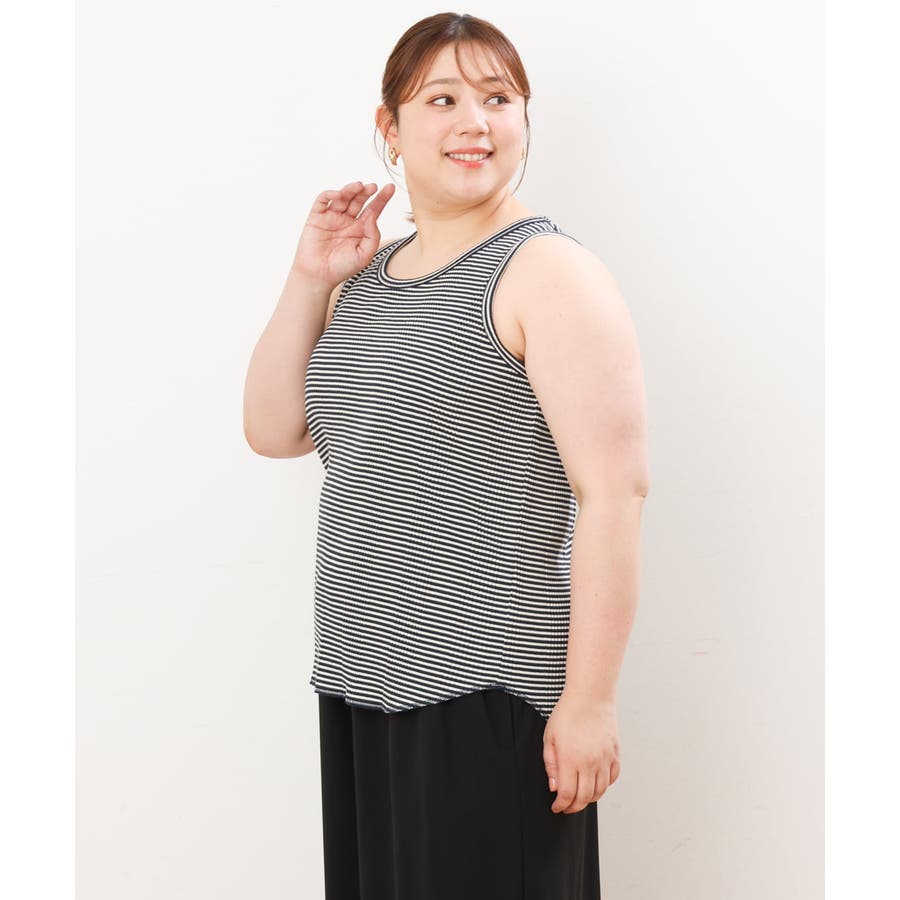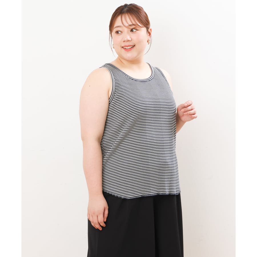 【大きいサイズ/a.v.v×eur3】ミジンコボーダータンクトップ