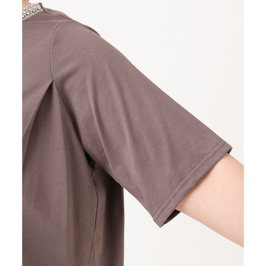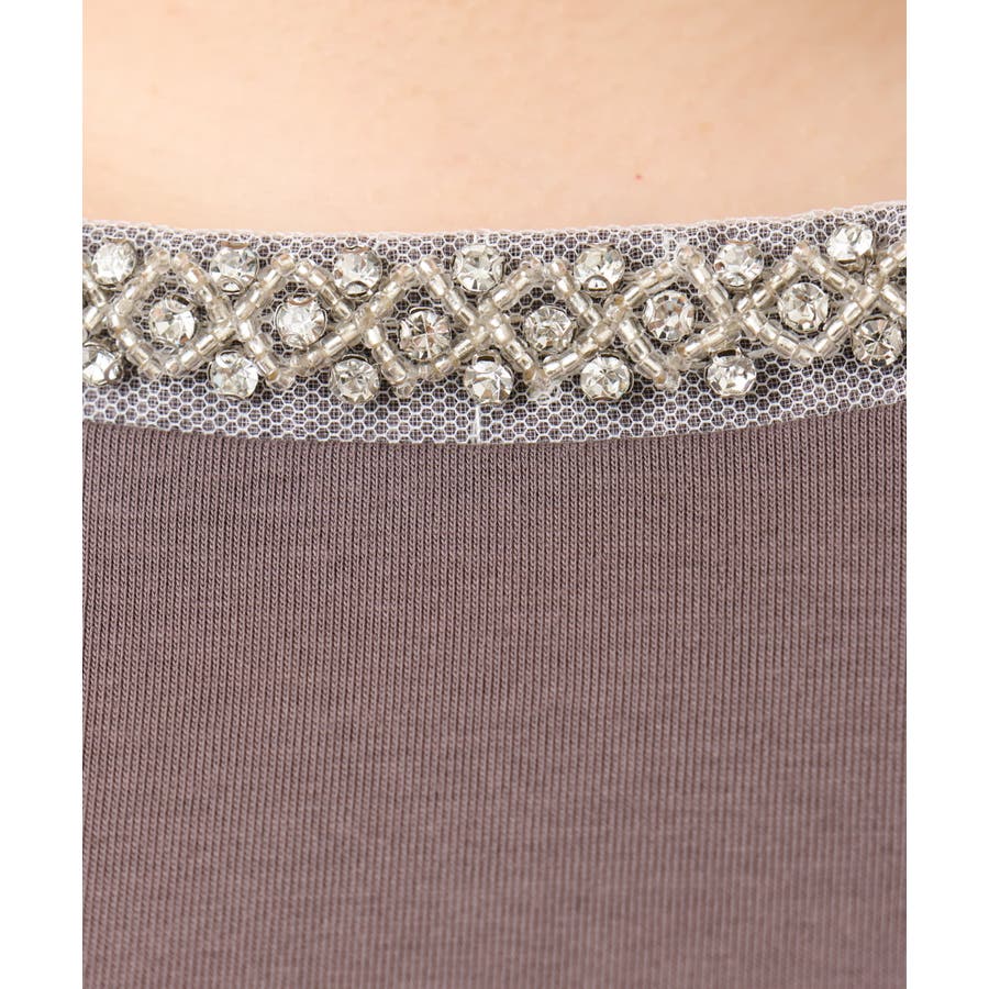 きらきらビジューの襟元でアクセサリーいらずで華やかに決まります。