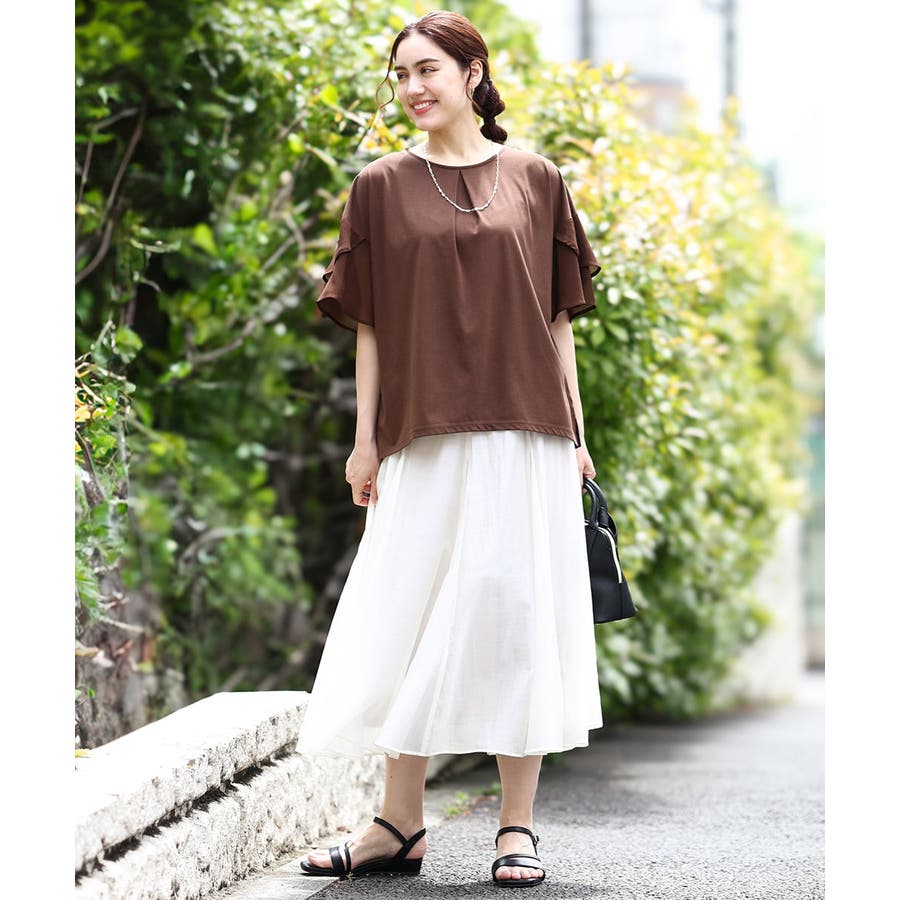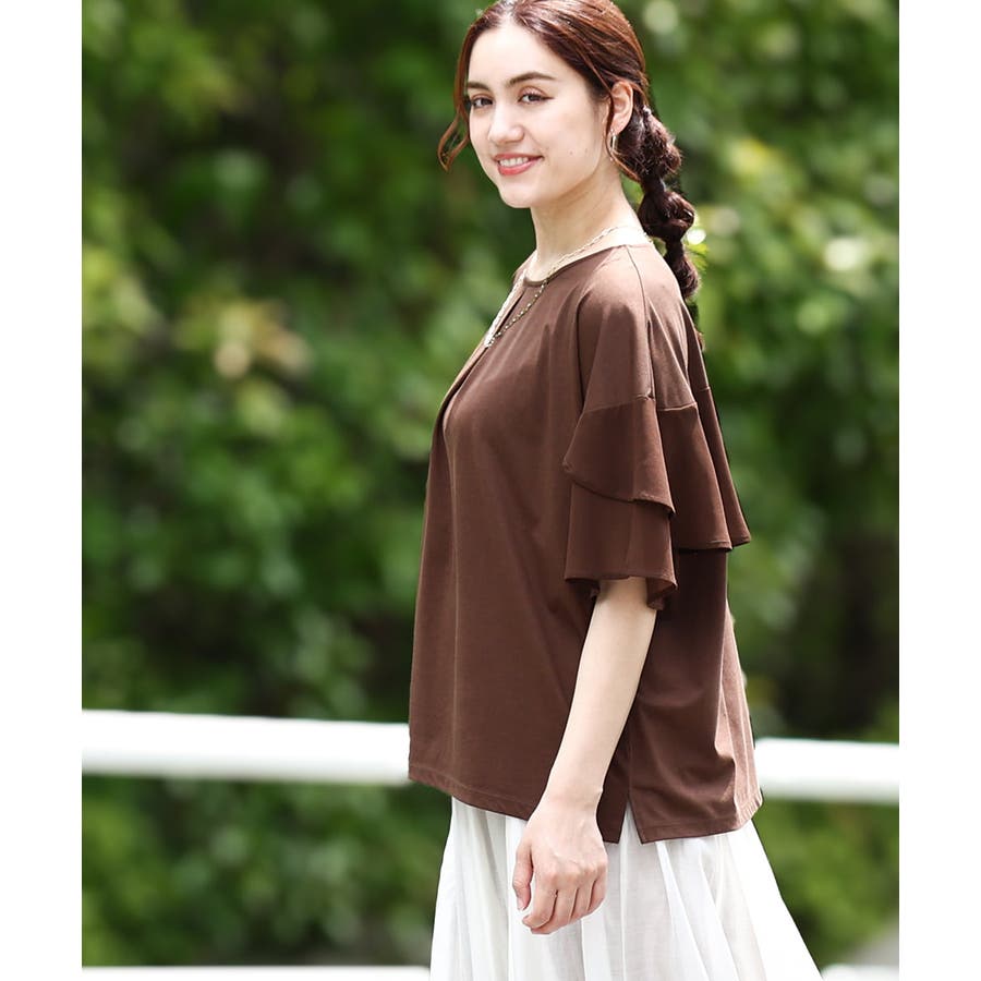 ラッフルスリーブがかわいいデザイントップス。