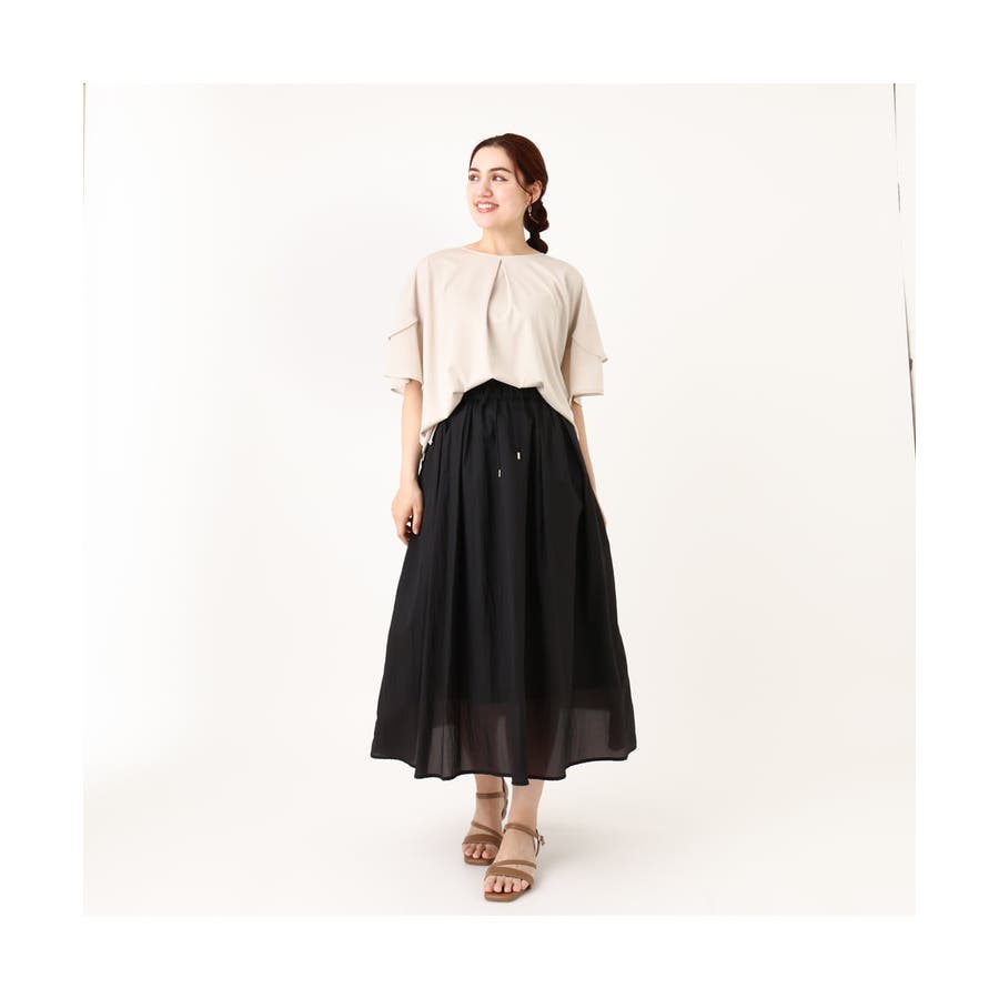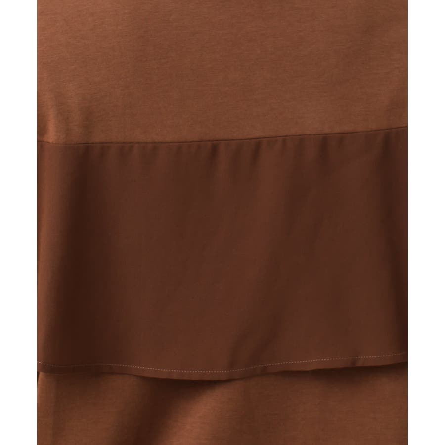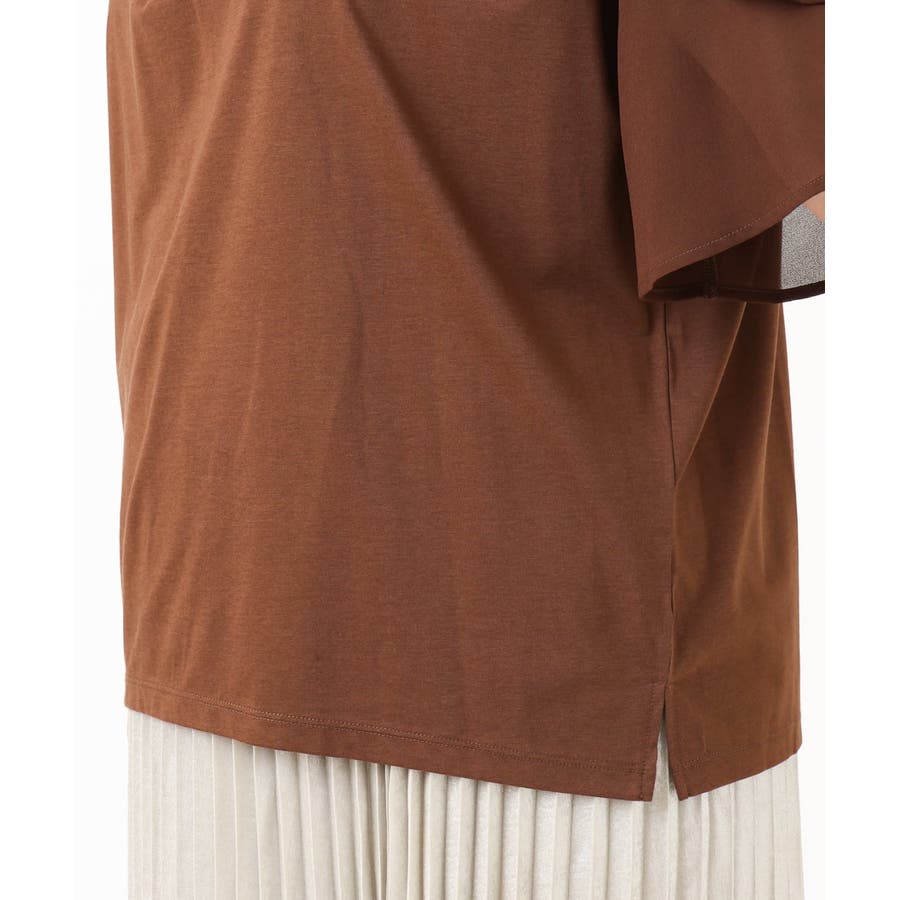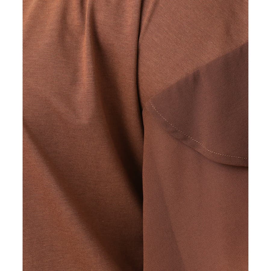 身頃は柔らかなジャージー、袖はシフォンジョーゼットの異素材使いで女性らしく華やかなアイテム。