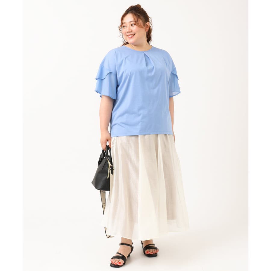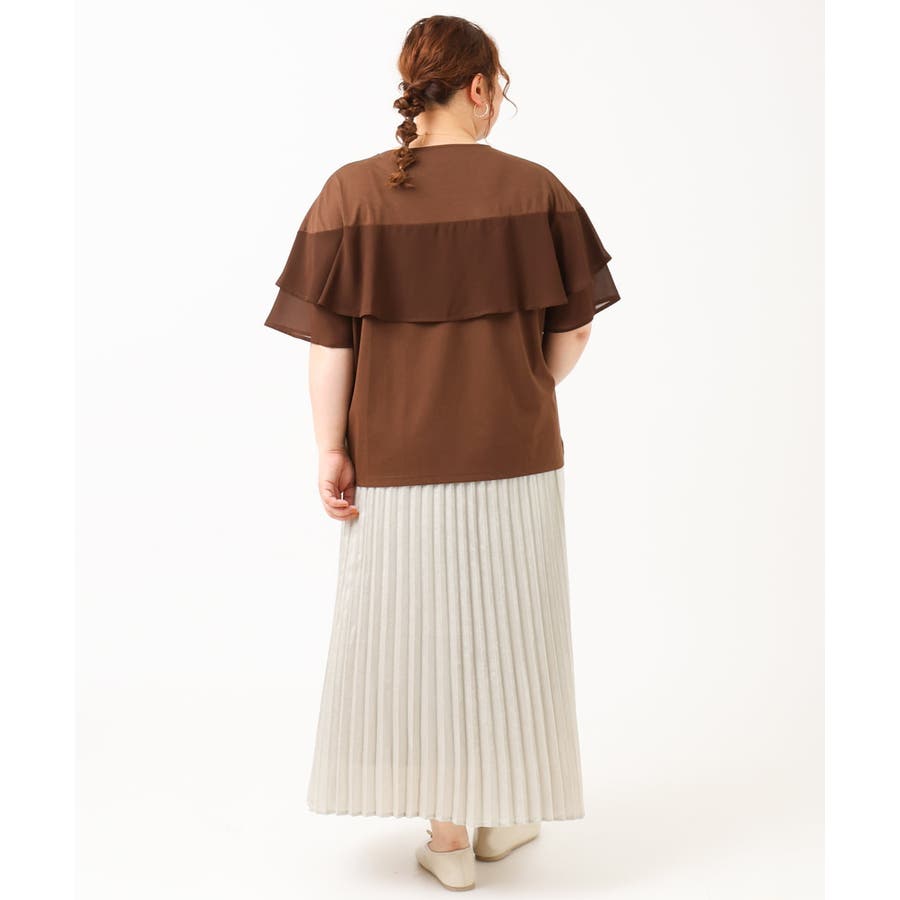 【ライトグリーン(30)】【大きいサイズ/a.v.v×eur3】シフォンケープカットソー