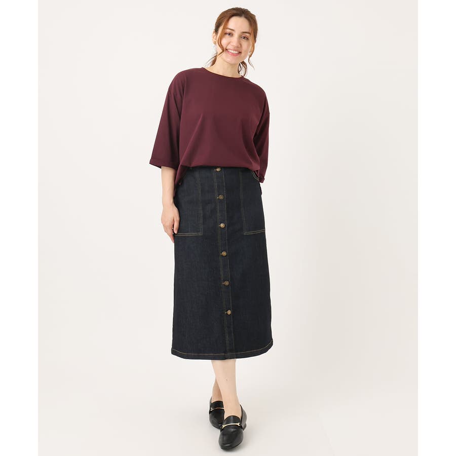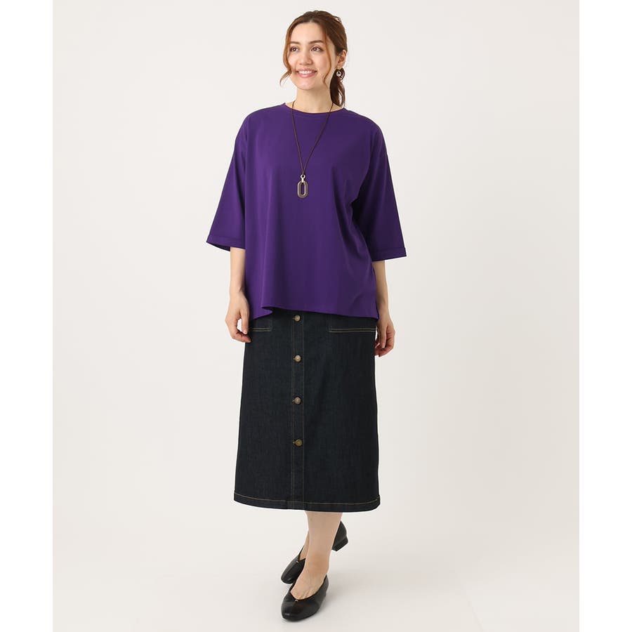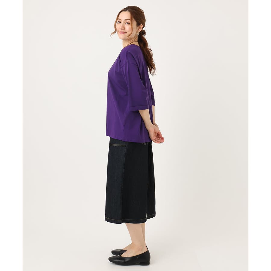 程よい着丈なのでそのまま着ても、タックインしてもどちらでもすっきり着られます。