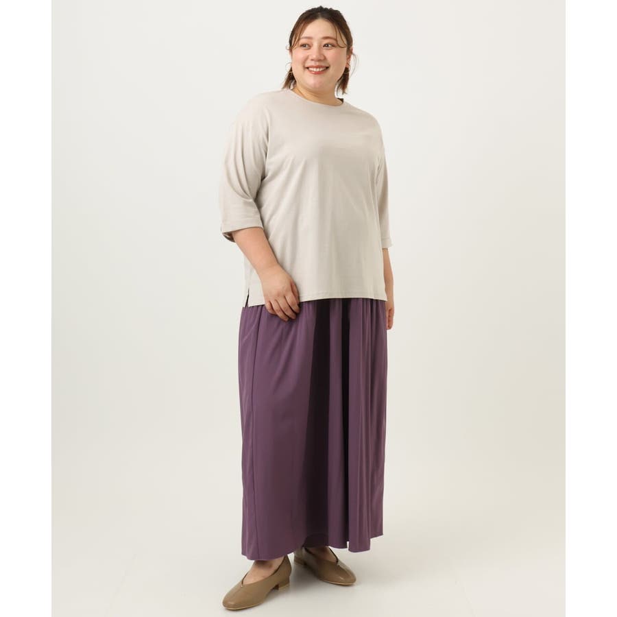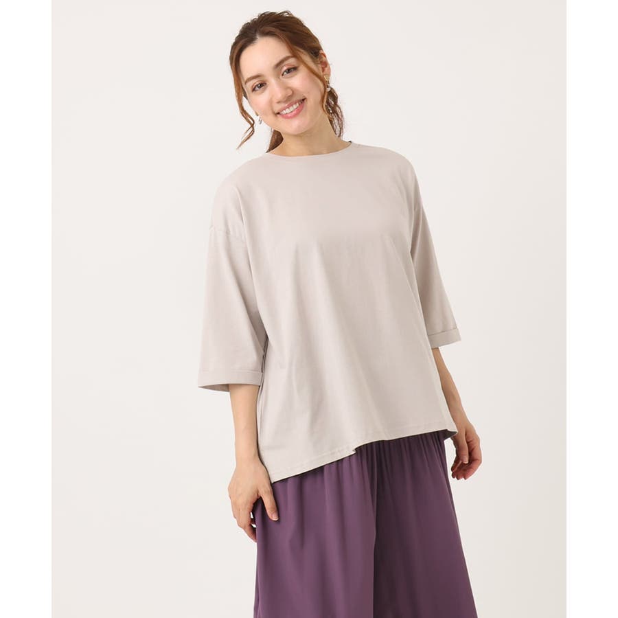夏場にもうれしいコットン100%のTシャツはドロップショルダーで肩回りも楽ちんなゆったりシルエット。