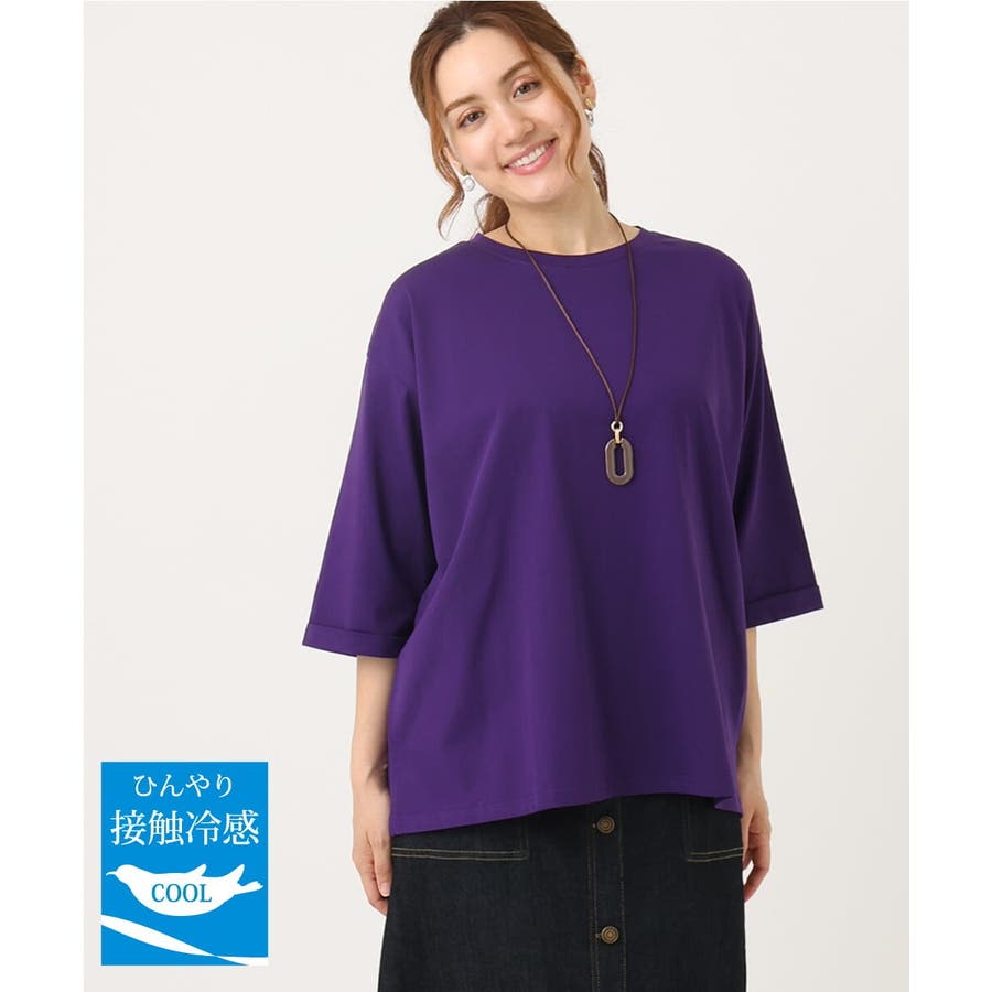 【大きいサイズ/接触冷感】UVカットロールアップスリーブカットソー