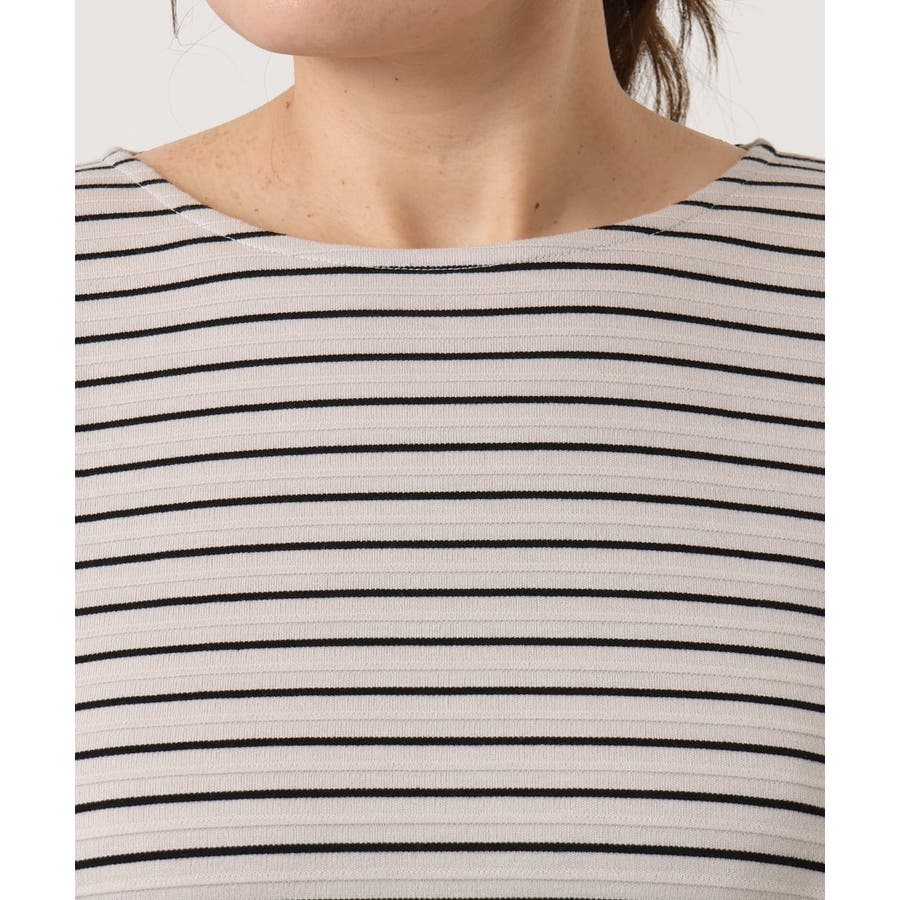 透けない、中肉のジャージー素材。表面に凹凸のあるリップルボーダー編みです。