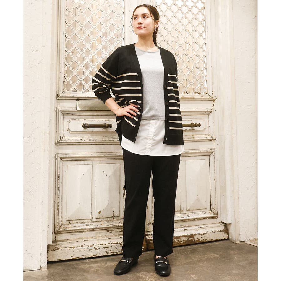 着丈長めなのでパンツを合わせたスタイリングがおすすめ。