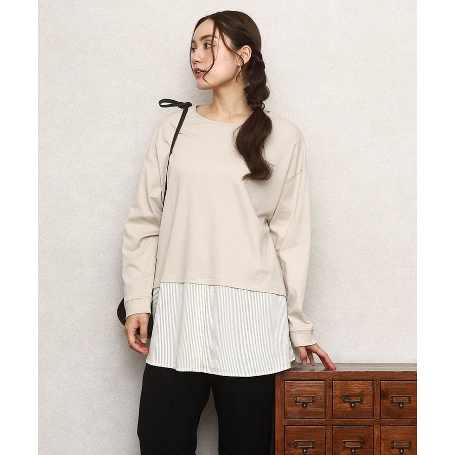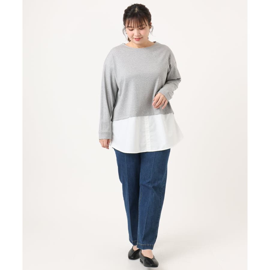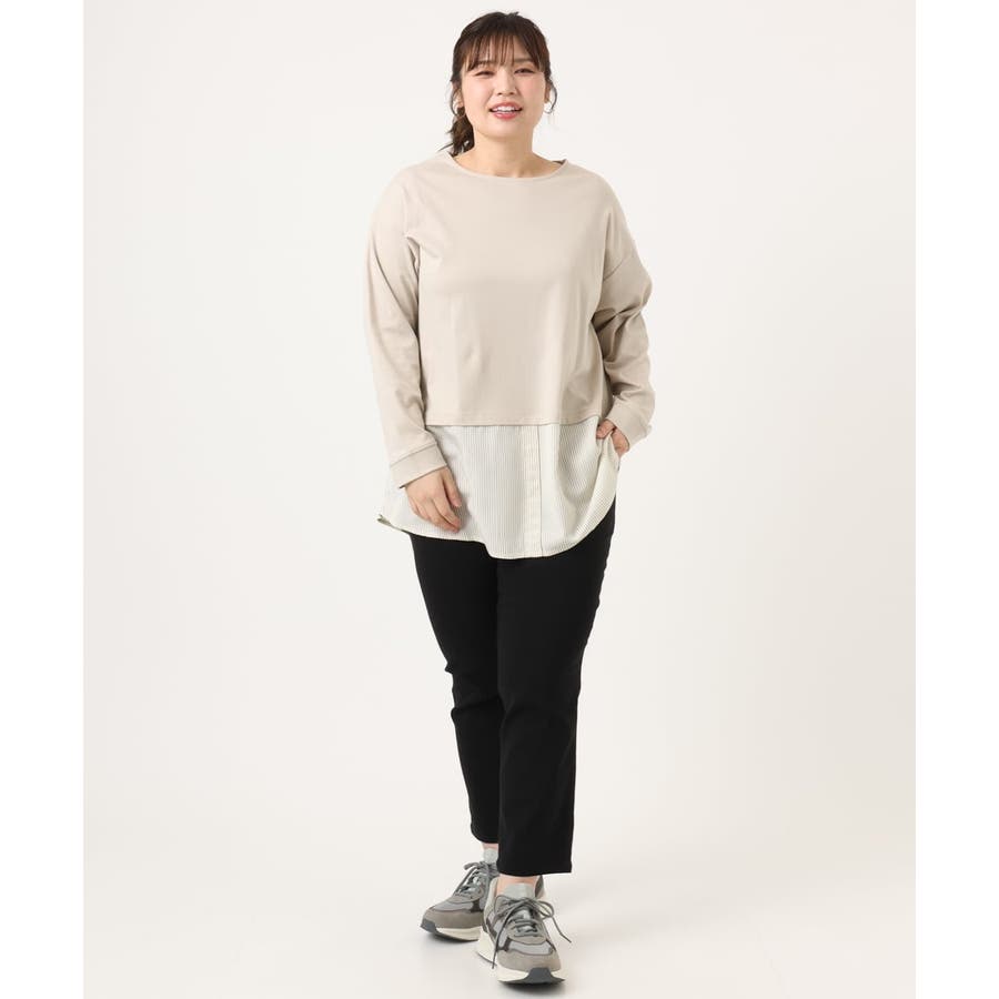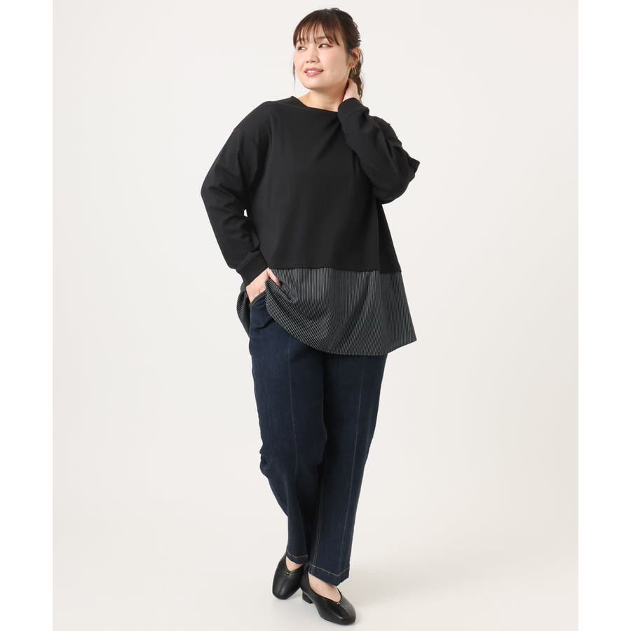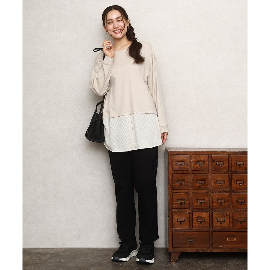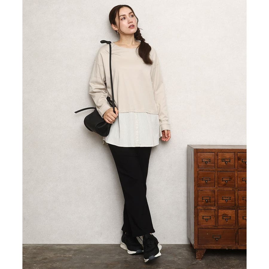裾がシャツレイヤード風のデザインなので、1枚着るだけで簡単にスタイリングが決まります。