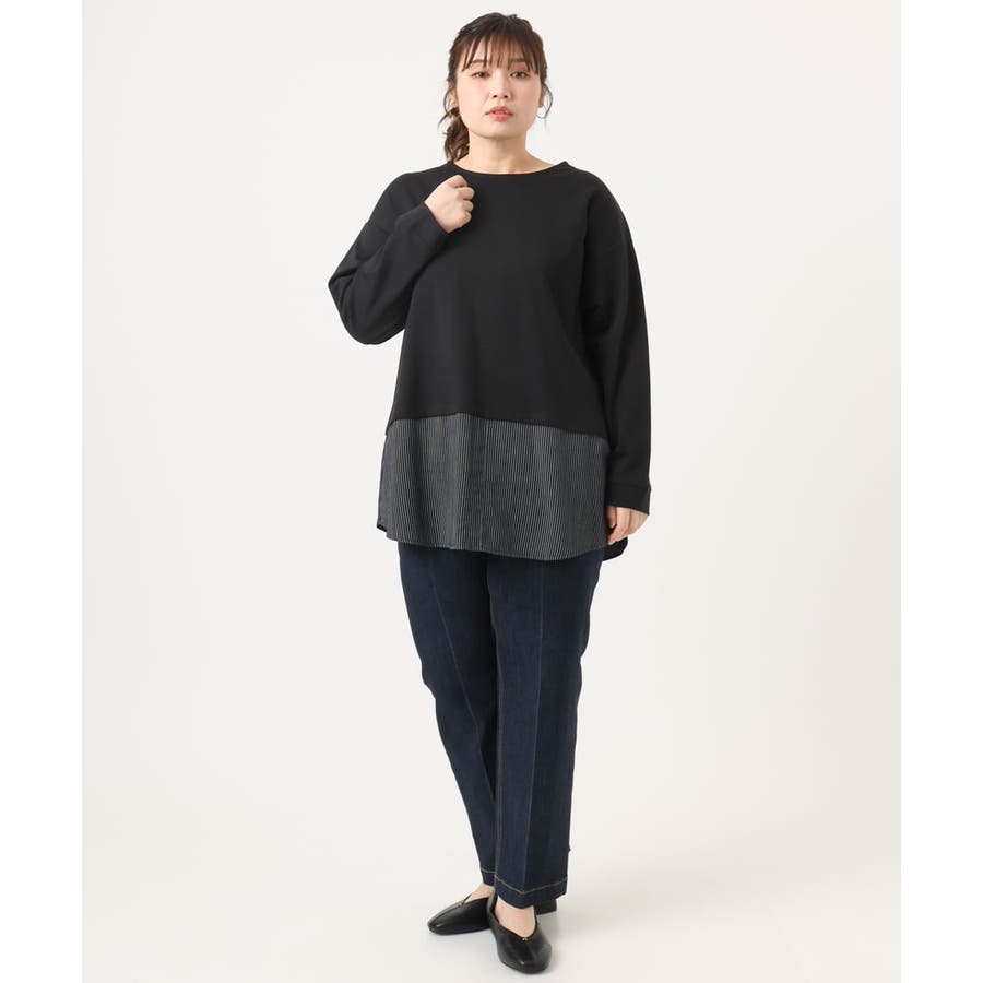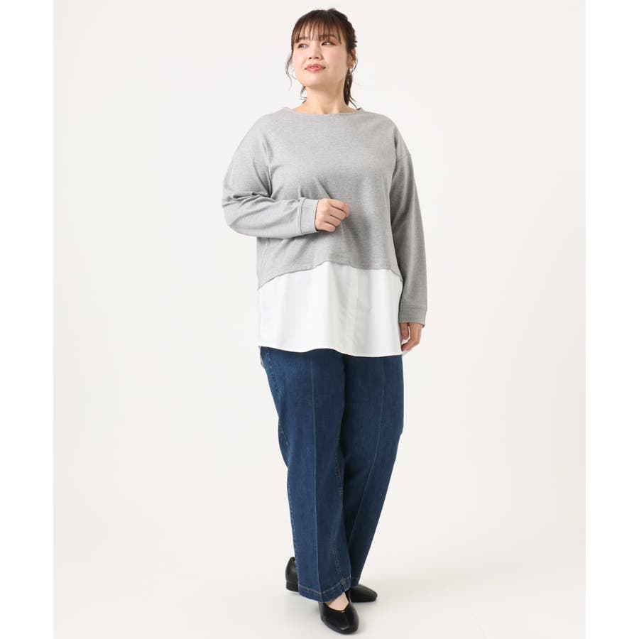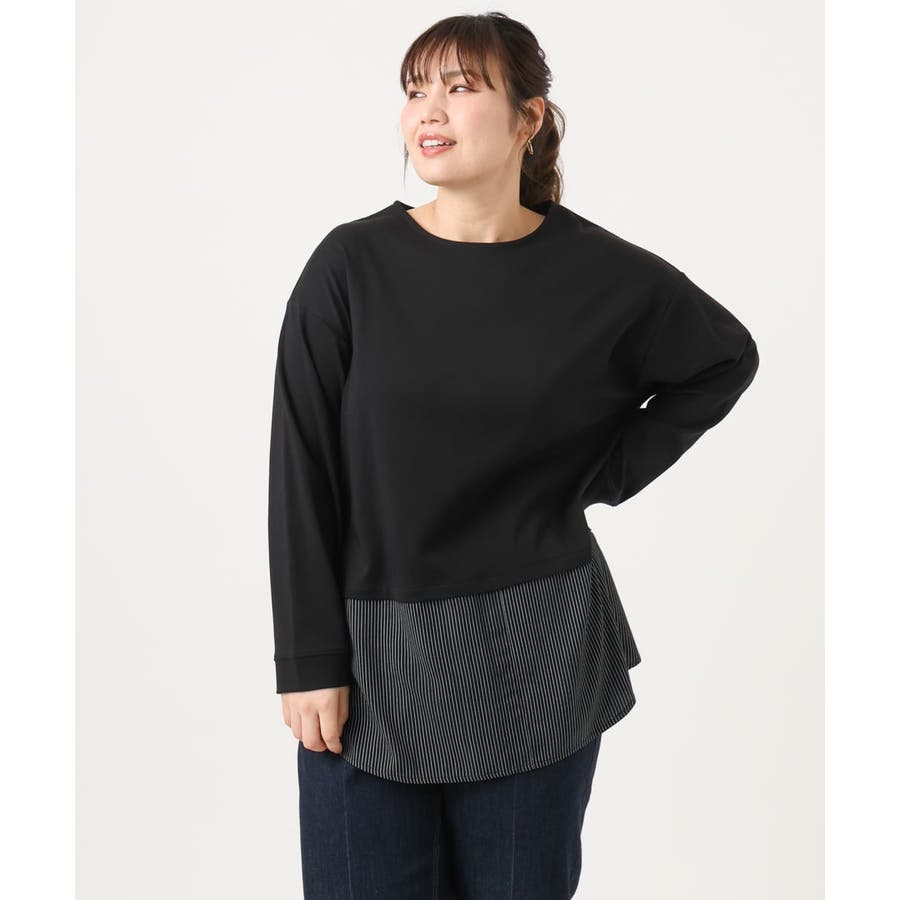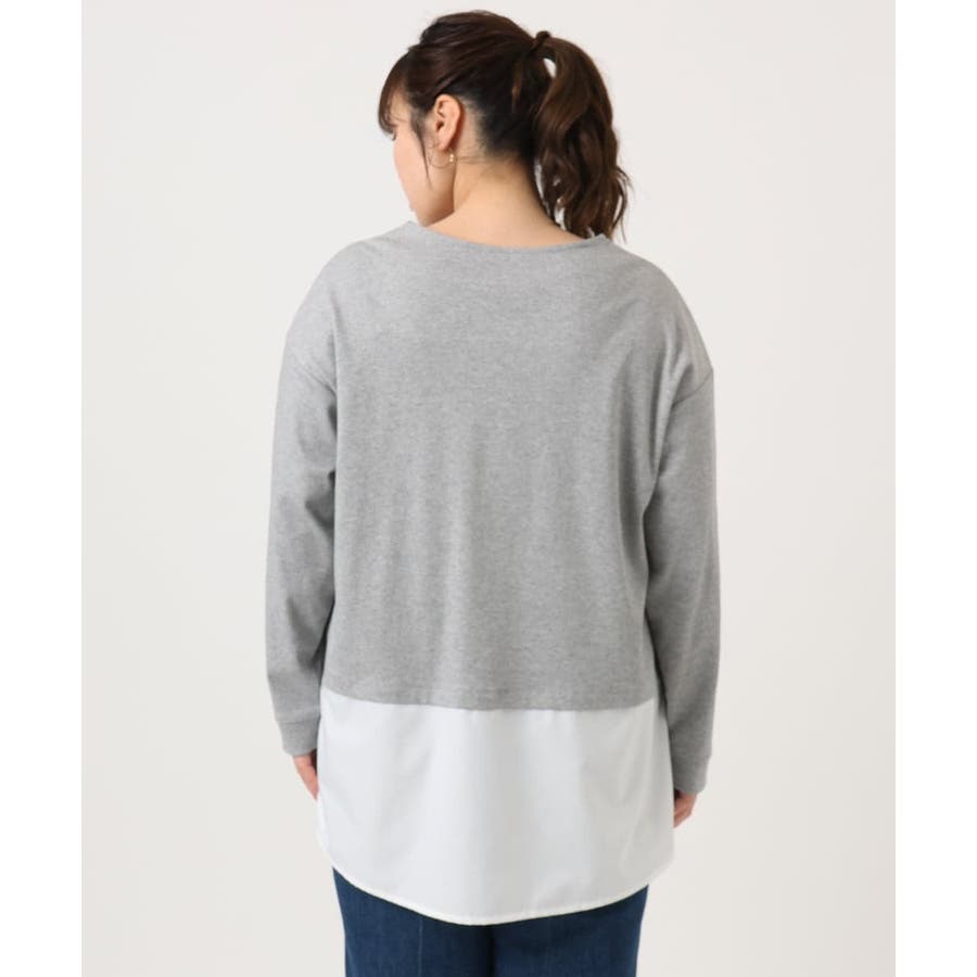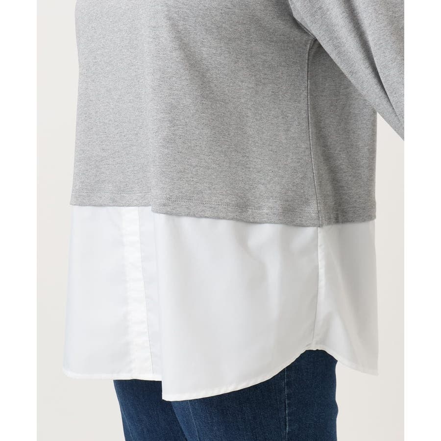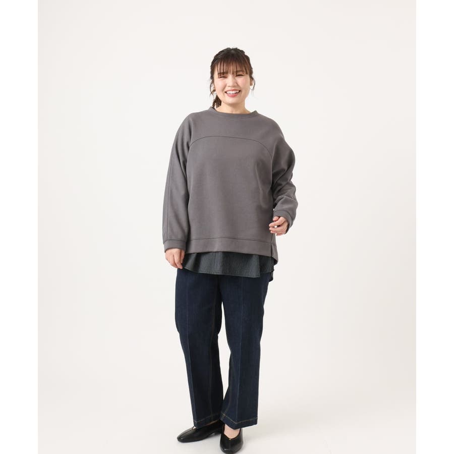裾がシャツレイヤード風のデザインなので、1枚着るだけで簡単にスタイリングが決まります。