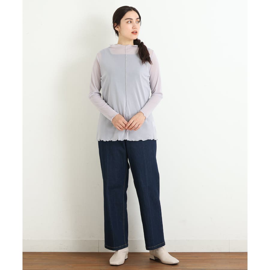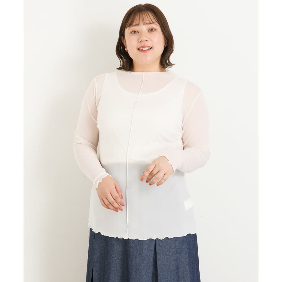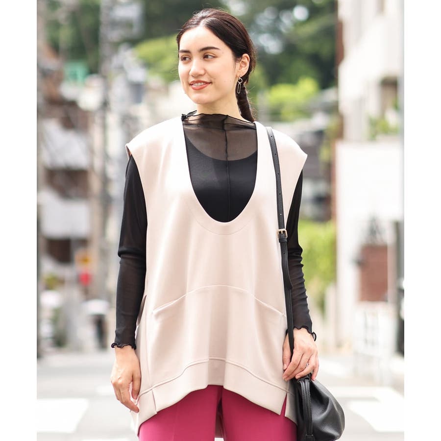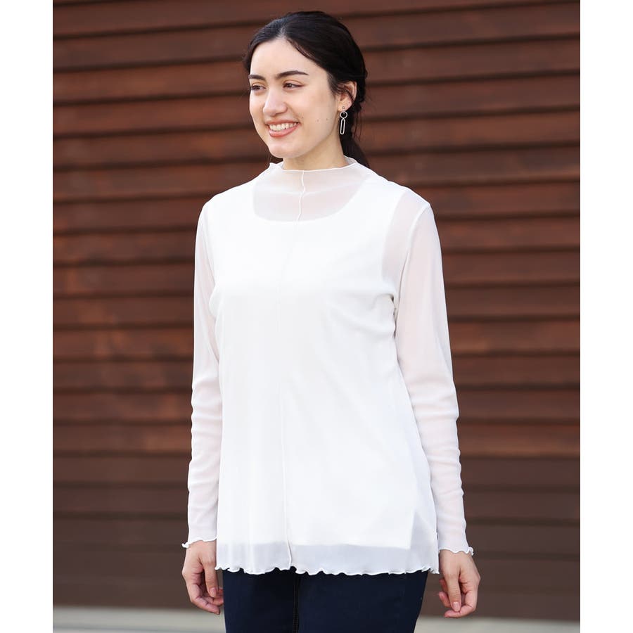 中にタンクや薄手の長袖インナーを合わせて透け感を楽しんだり首元から覗かせたり、ネックの開きが気になる時にも重宝します