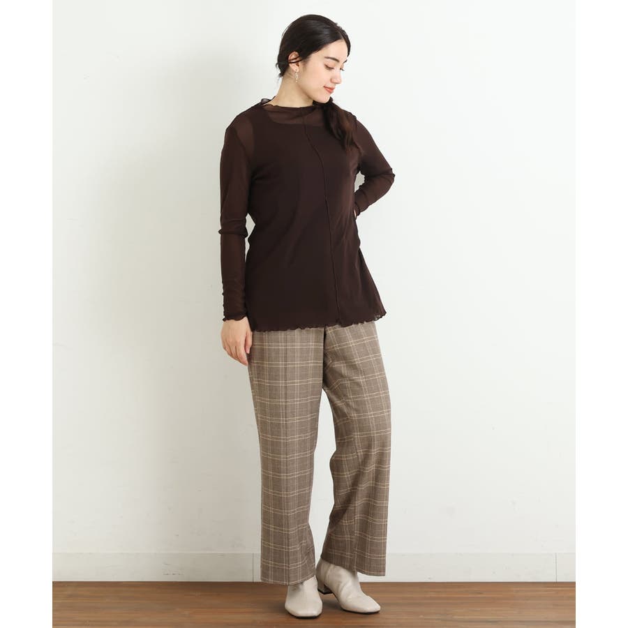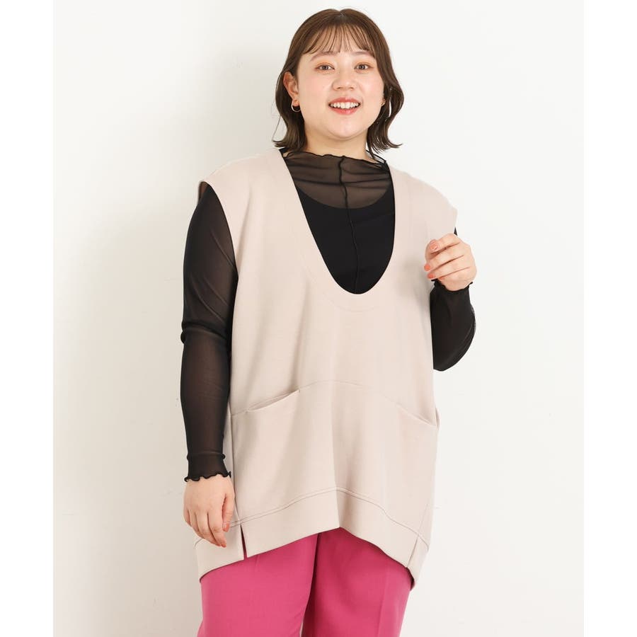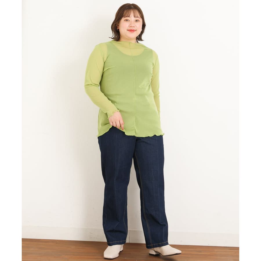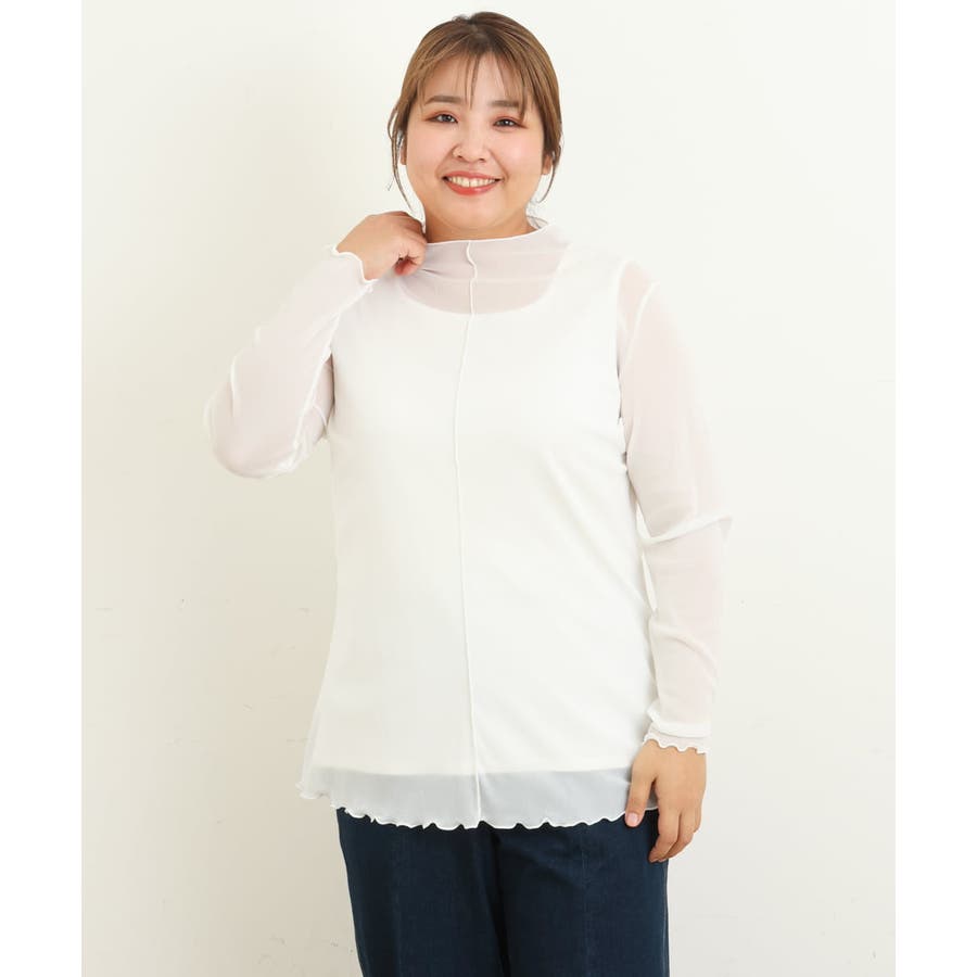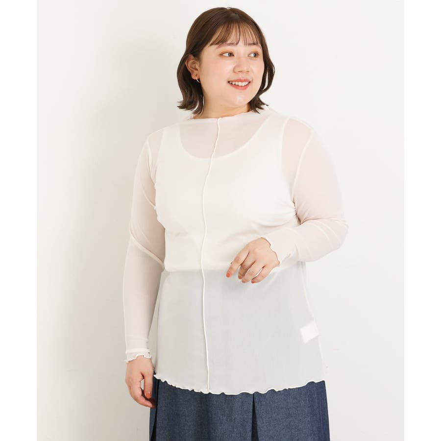 中にタンクや薄手の長袖インナーを合わせて透け感を楽しんだり首元から覗かせたり、ネックの開きが気になる時にも重宝します