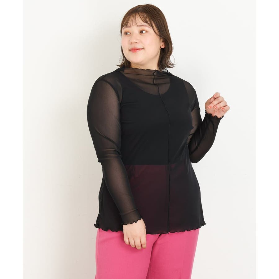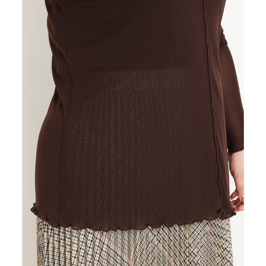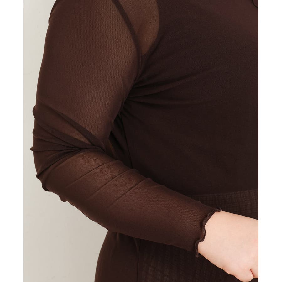 透け感のあるネット(チュール)素材でかなり伸び感があるので苦しさの無い着用感で、首元も上まで来すぎないちょうど良い高さです