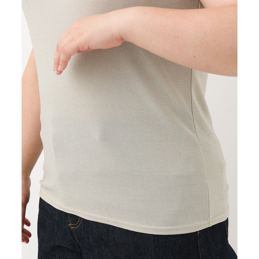 表面にラメ糸を入れ裏面には出にくいプレーティング編みなので、ちくちくしづらくラメ入りでも着心地良くご着用いただけます。