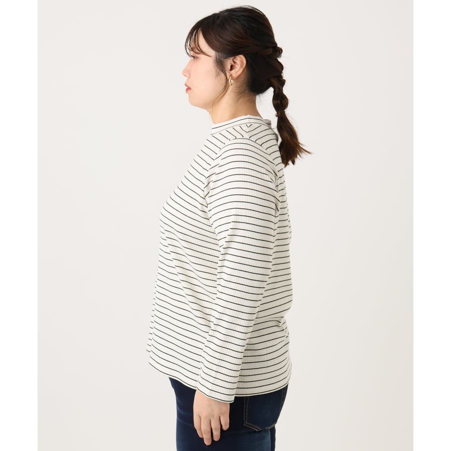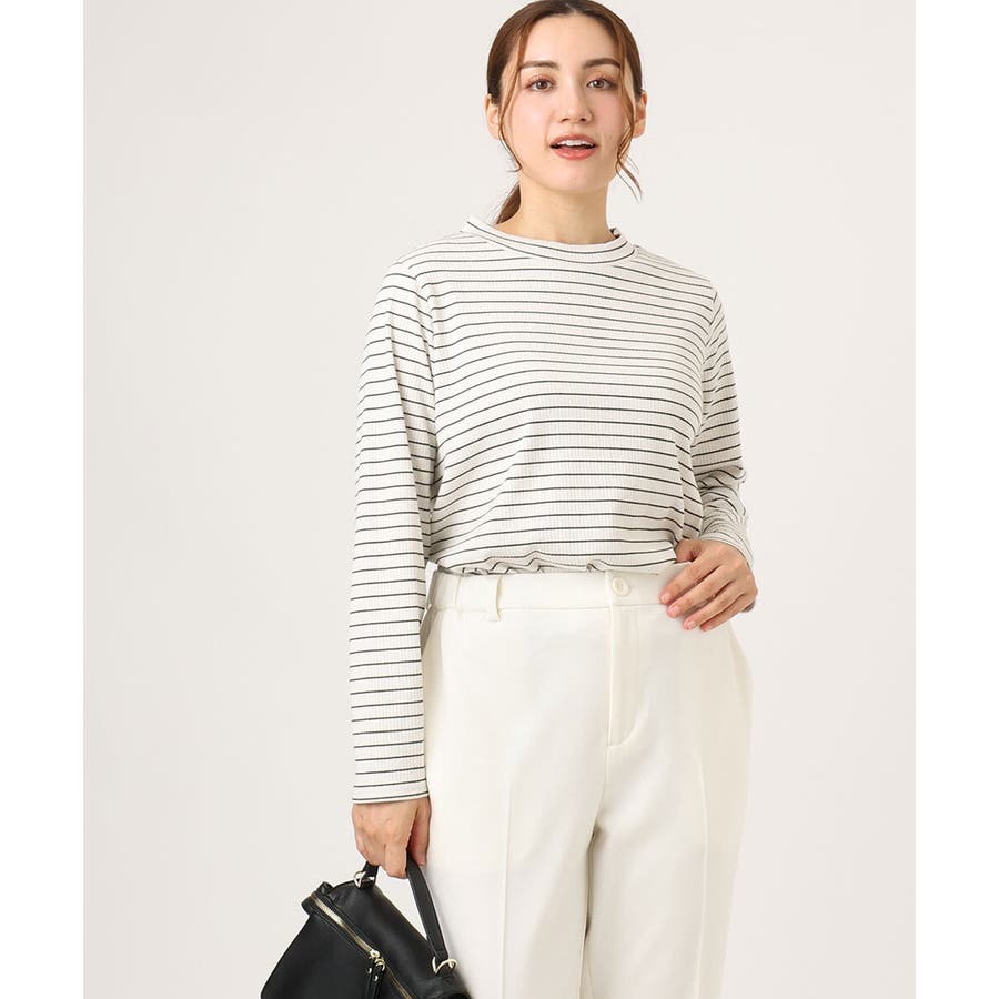 程よくコンパクトなシルエットですが体のラインをひろいにくく、1枚でもレイヤードにもピッタリなベーシックトップスです。