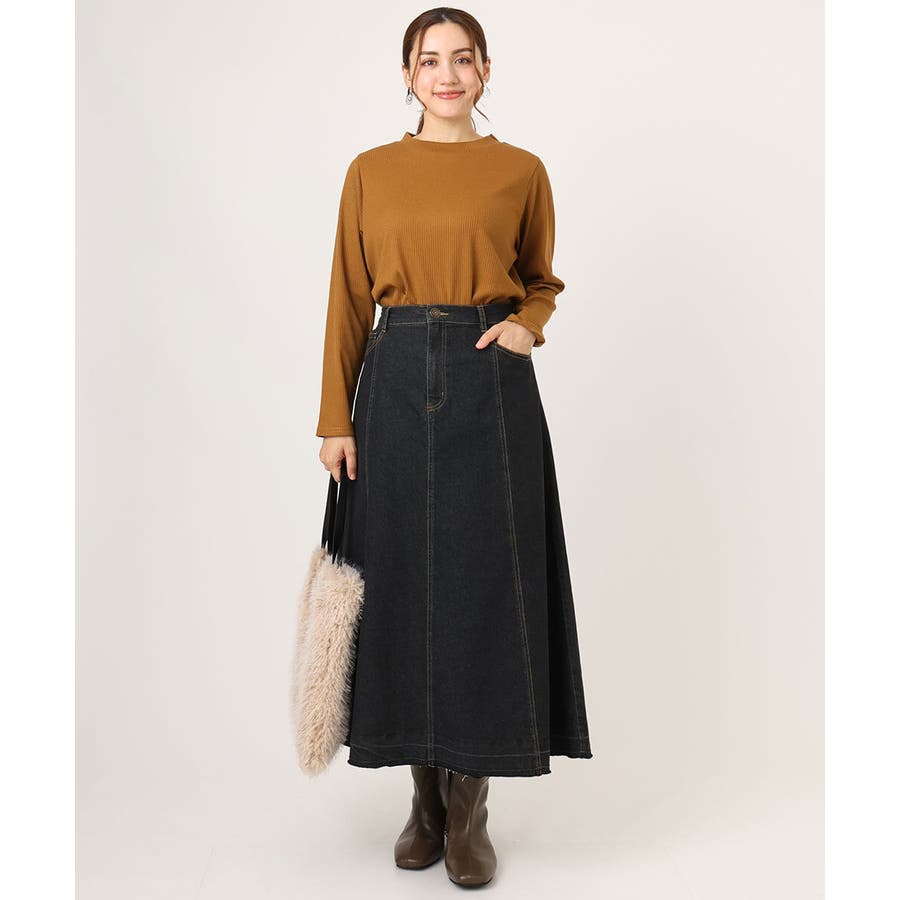 ワイドパンツやフレアスカートなどボリュームのあるボトムスに合わせてもすっきり着られます。