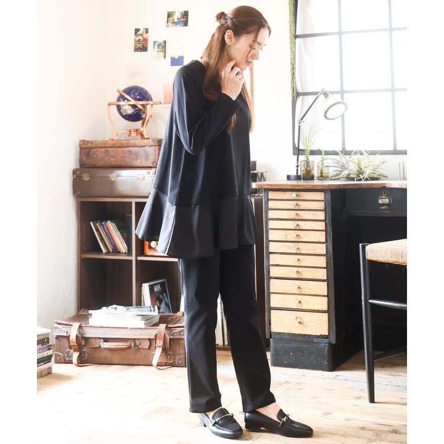 ニットやスウェットのインナーに着て裾からサテンを見せて着ると、可愛さをプラスしつつ気になる腰回りをカバーしてスタイルアップ効果にも◎