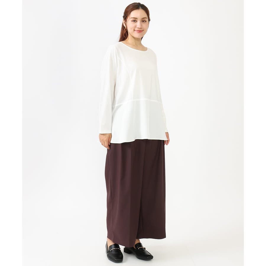 腰回りがカバーできる着丈なのでパンツやタイトスカートで合わせるのがおすすめ。