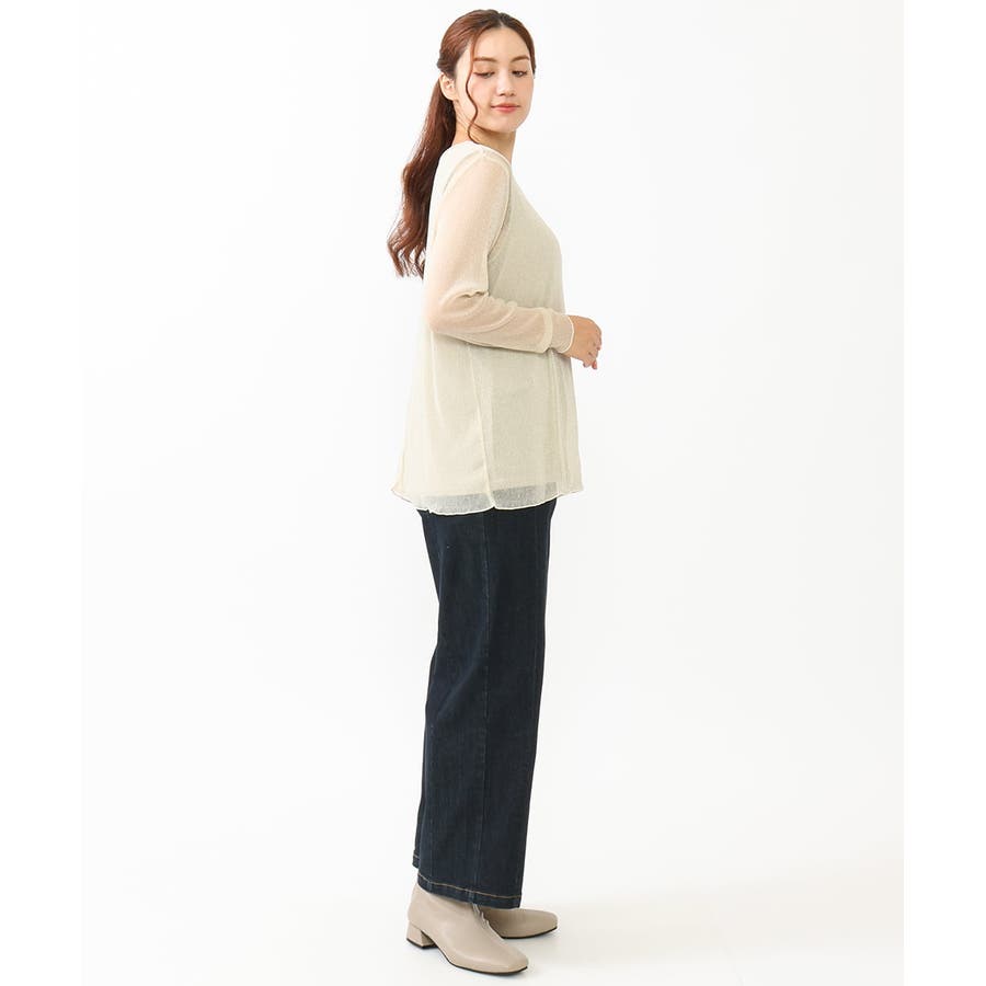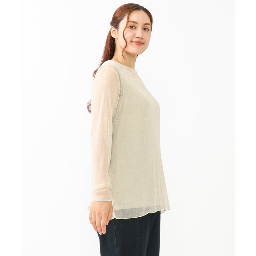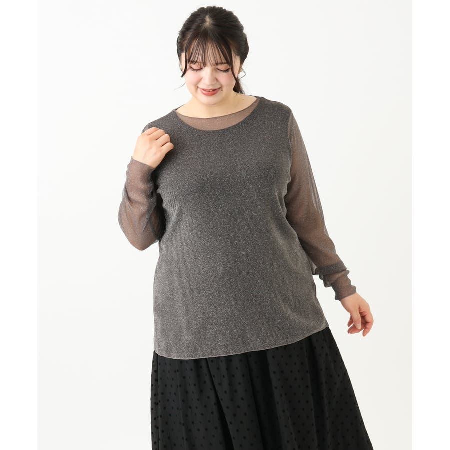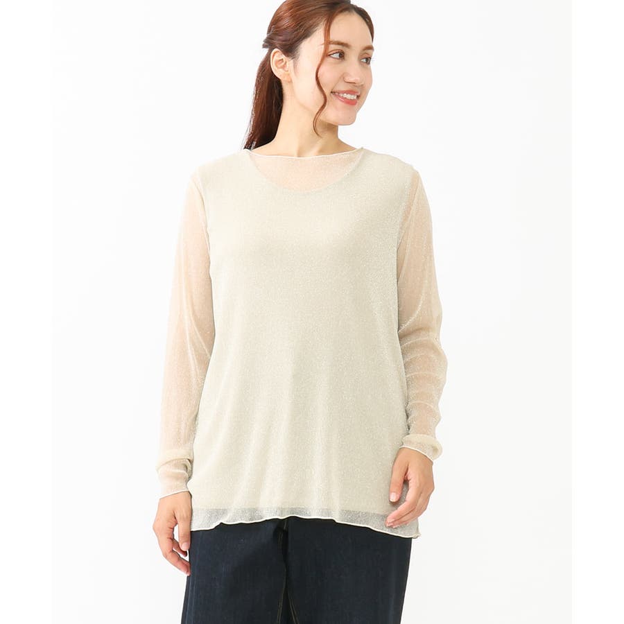 トレンドのシアー&ラメ入りのレイヤードトップスです。