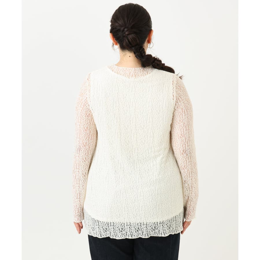 ストレッチのきいたレースが着心地の良い、シアーなレイヤードトップス。