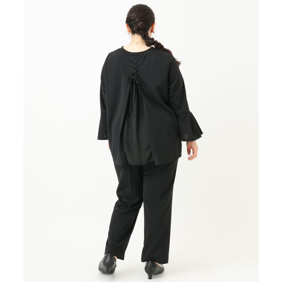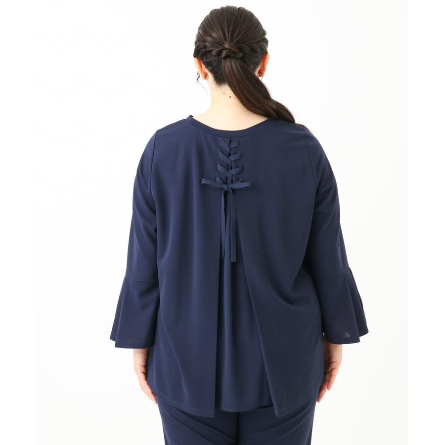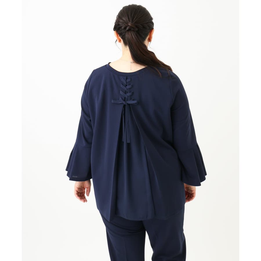 バックシャンのレースアップディテールがポイント。