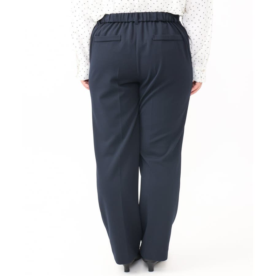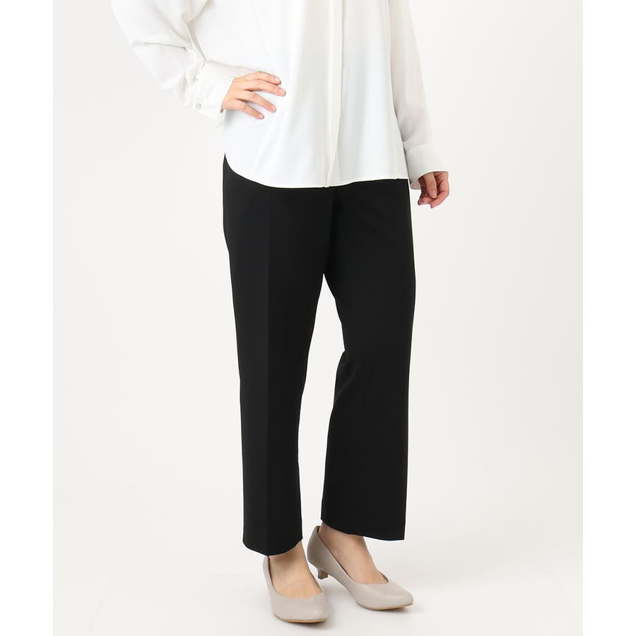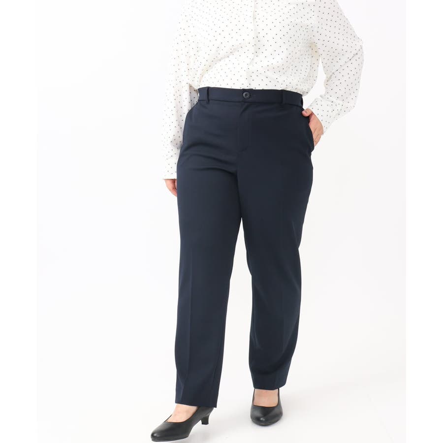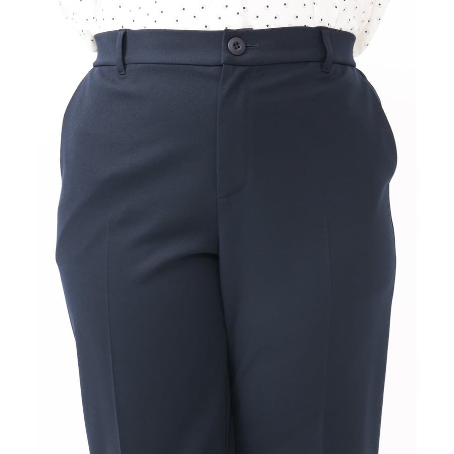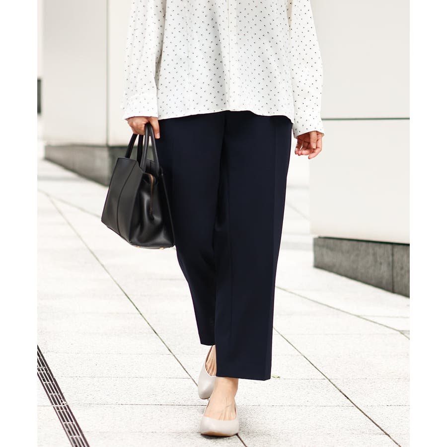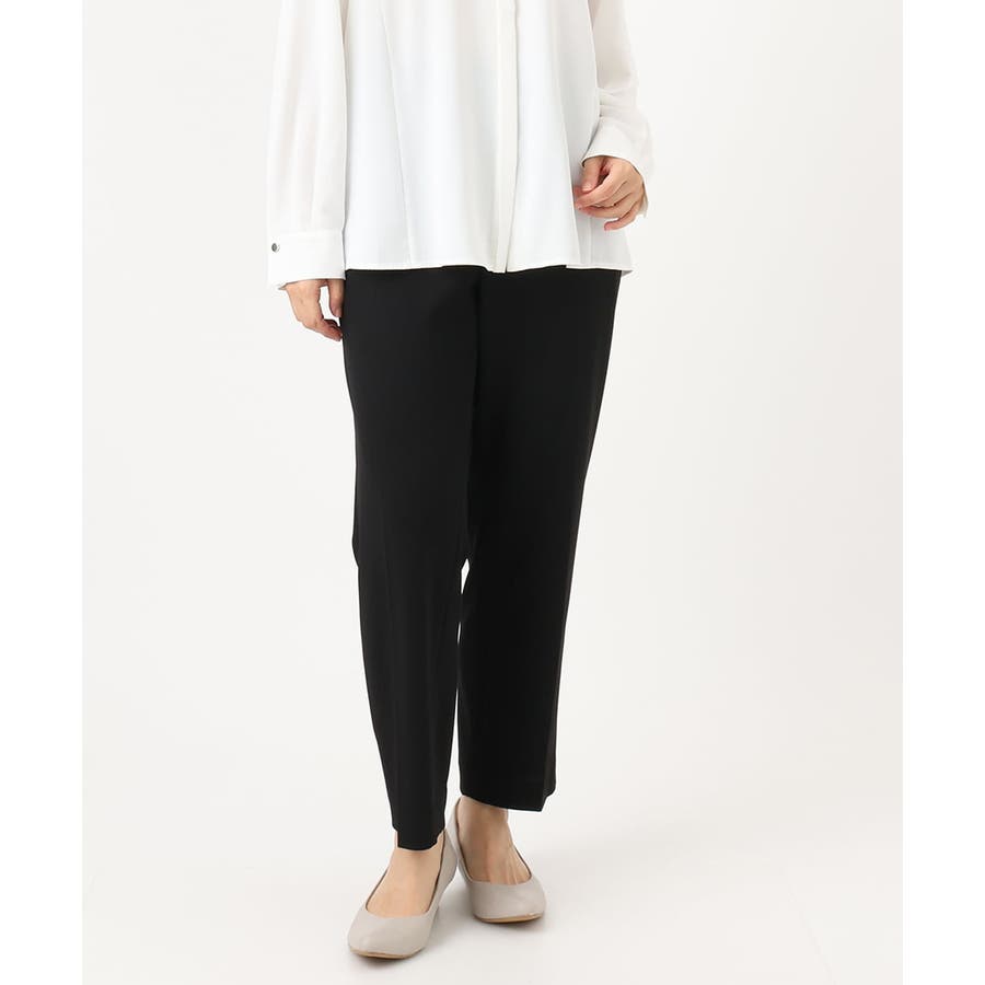 きちんと見えするセンタープレス入りで、体のラインを拾いにくい緩めのテーパードシルエット。