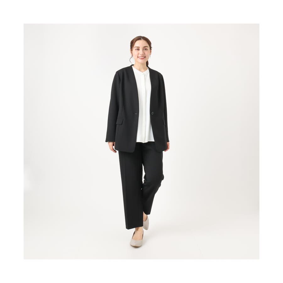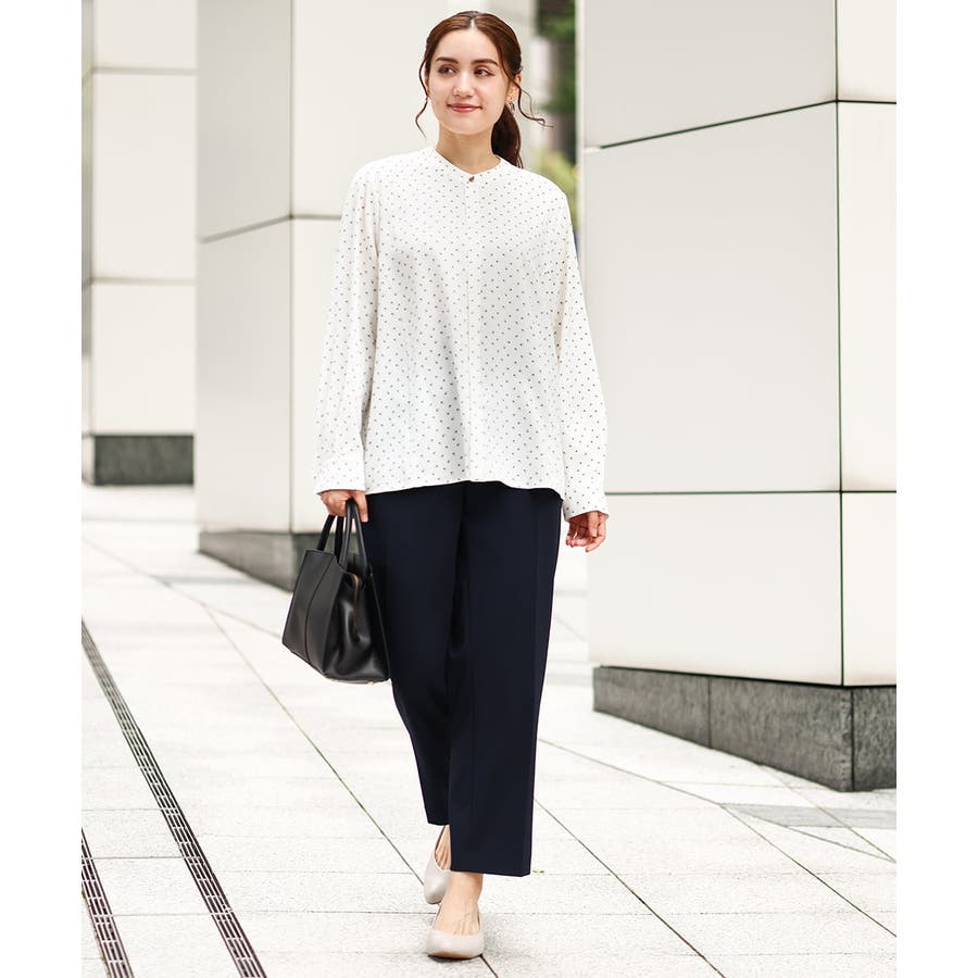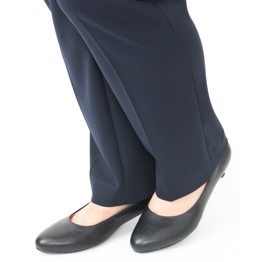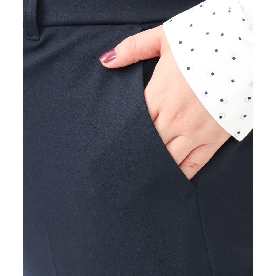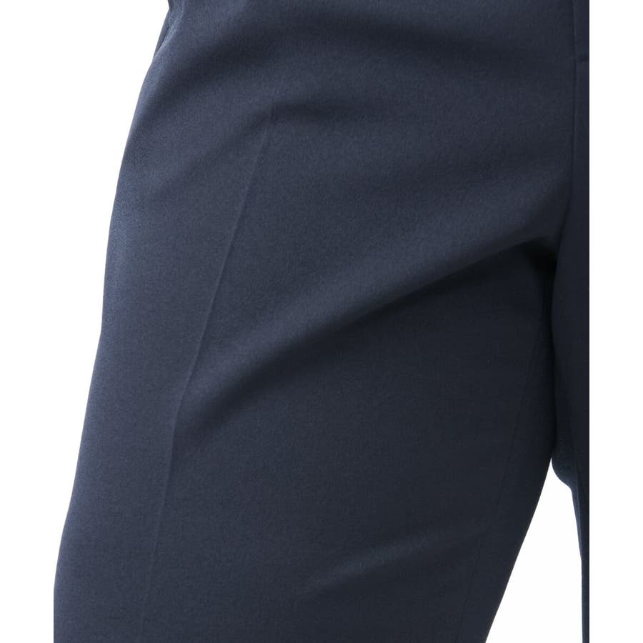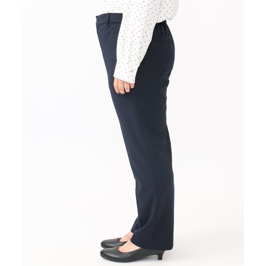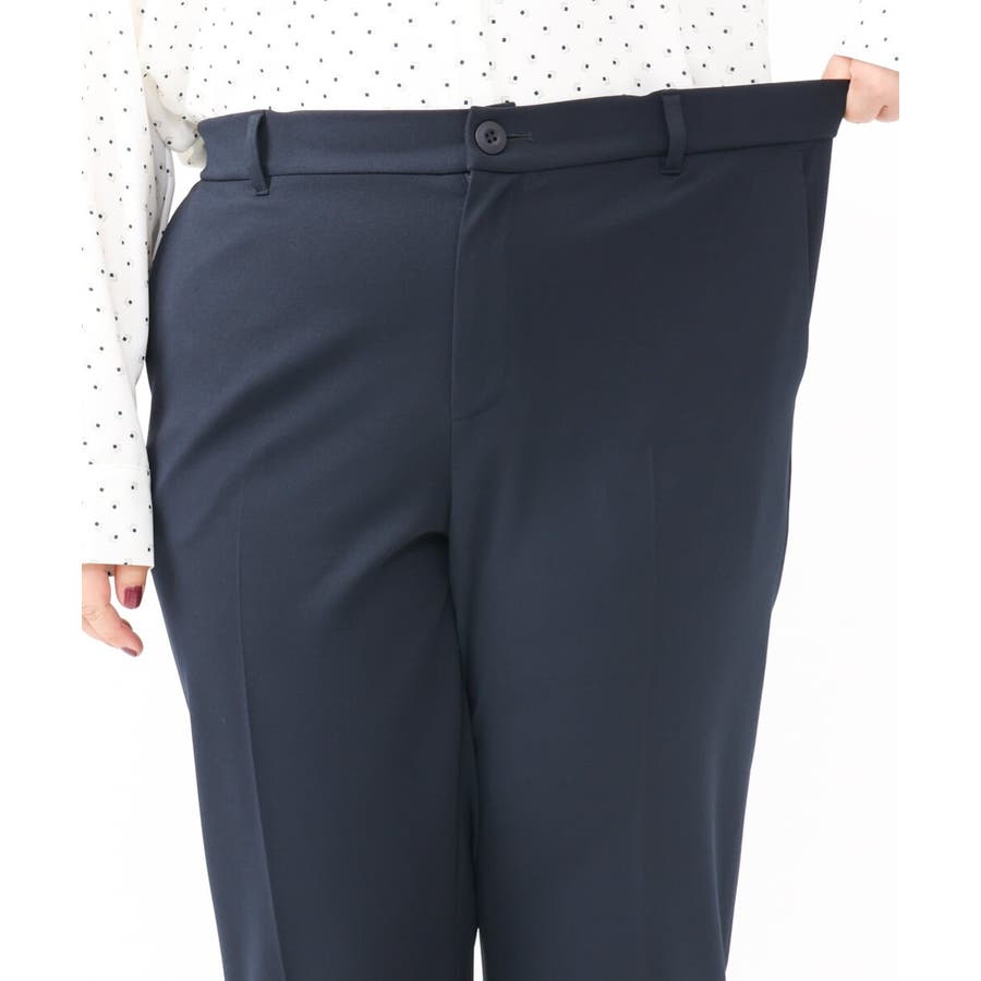 きちんと見えするセンタープレス入りで、体のラインを拾いにくい緩めのテーパードシルエット。