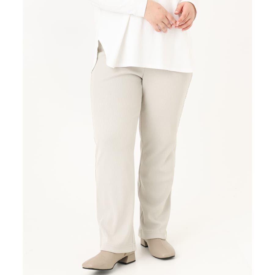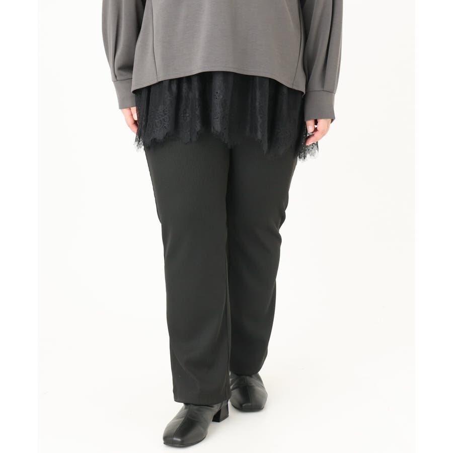 太過ぎないキレイ目のストレートシルエットで体のラインも拾いにくく、ウエスト総ゴム仕様で楽に穿いていただけます。