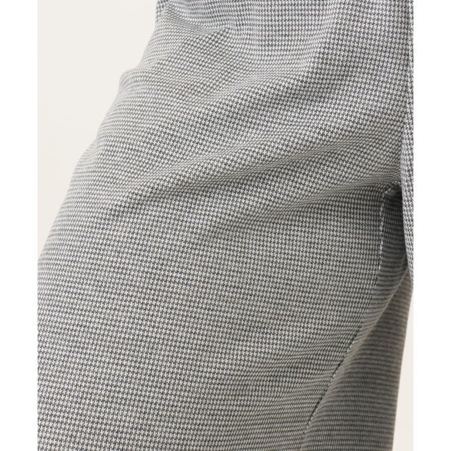 ストレッチの効いた柔らかな中肉ジャージ素材。ベーシックな千鳥柄ときれいな表面感のダンボールジャージーを使用。