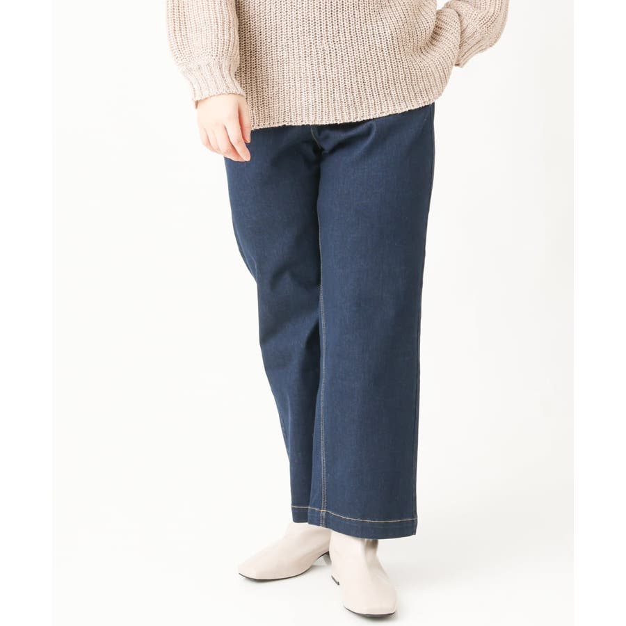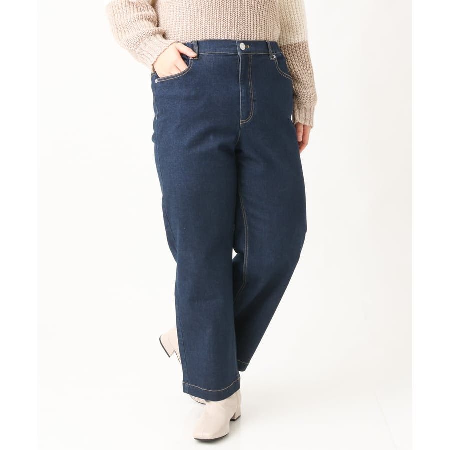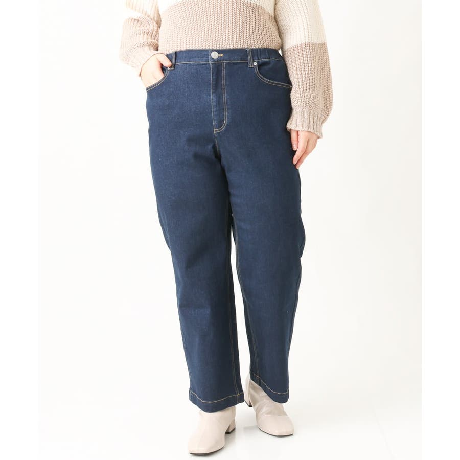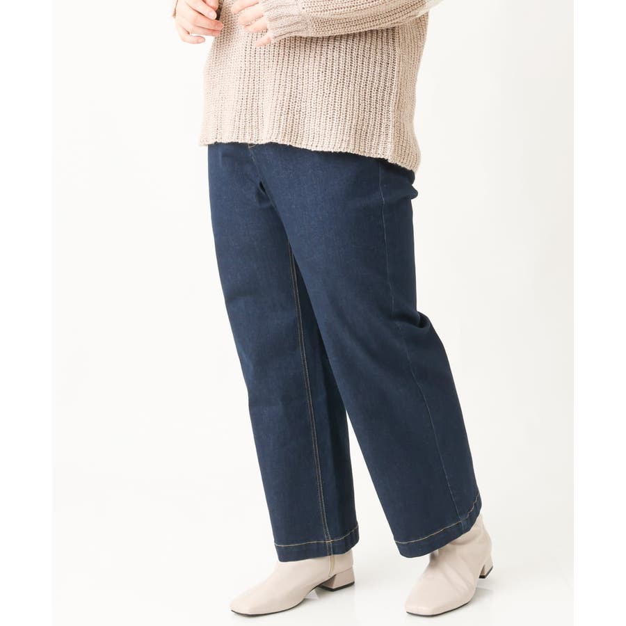 【大きいサイズ】ワイドストレートデニムパンツ