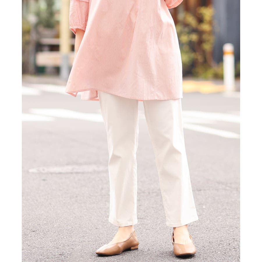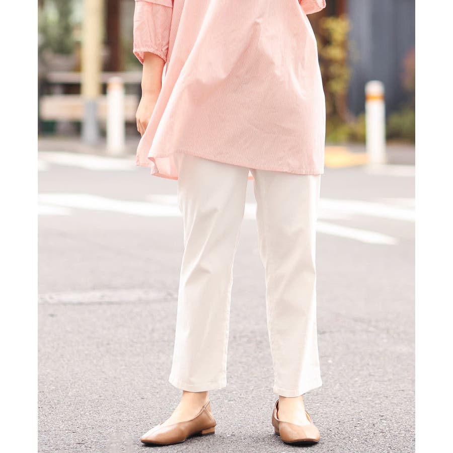 前明きタイプのストレートシルエットのベーシック型で、きれい目にもカジュアルにも着回し力のあるパンツです。