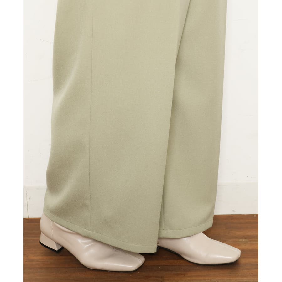 きちんと感のある素材でセンタープレスが足のラインをまっすぐに見せてくれるストレートワイドパンツです。